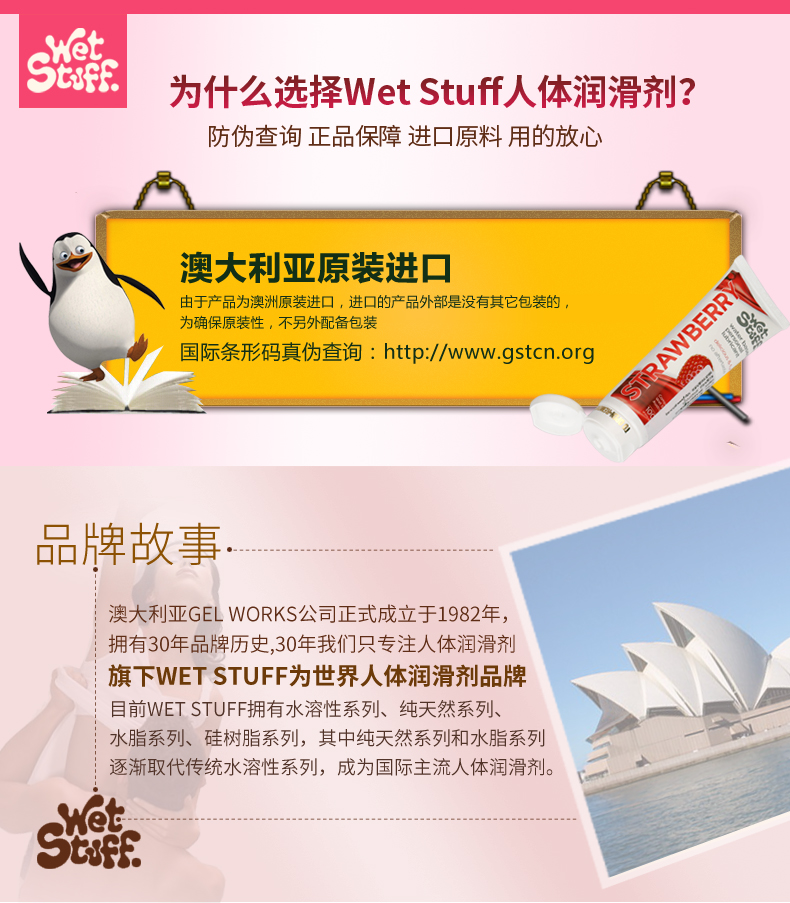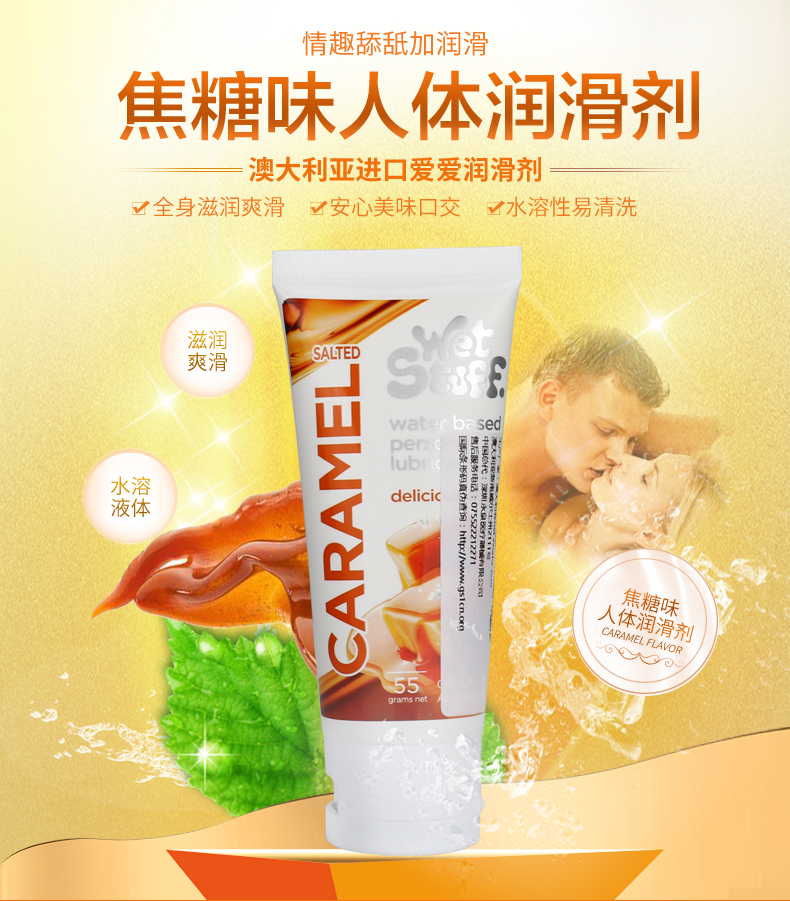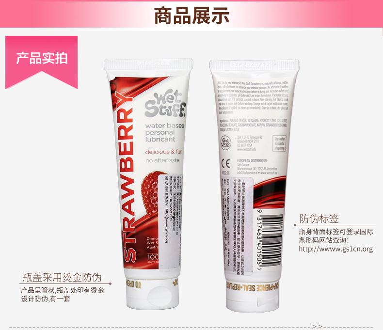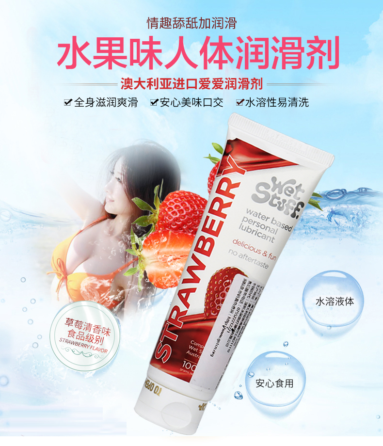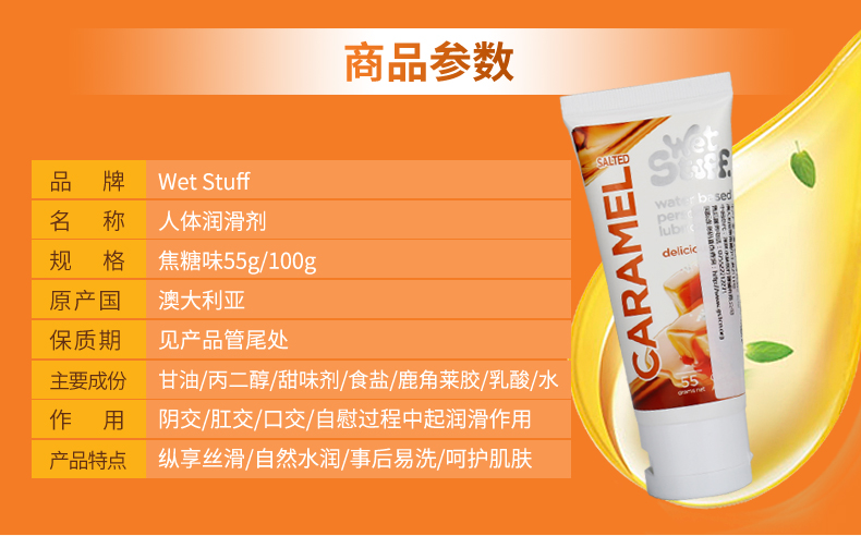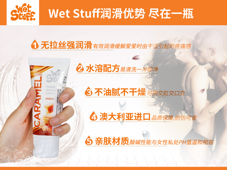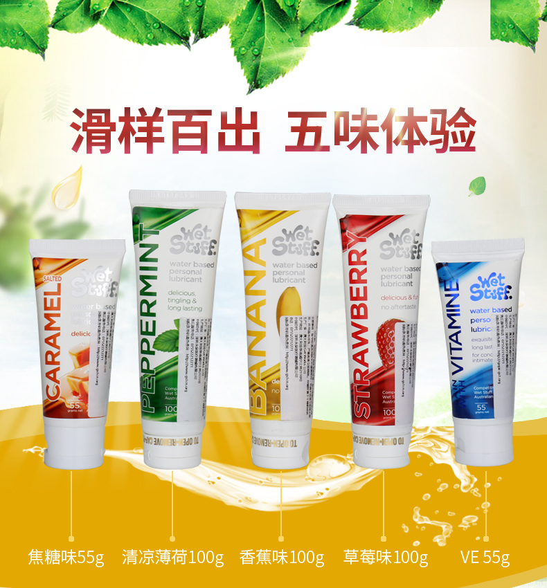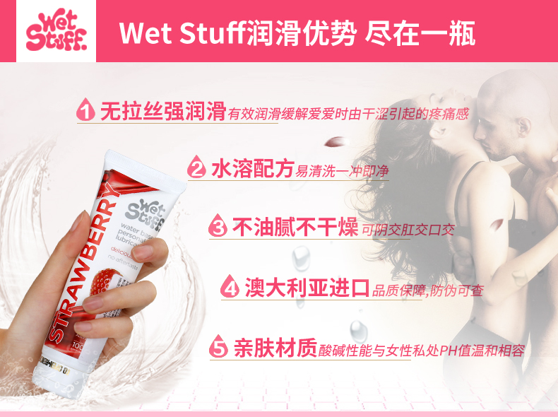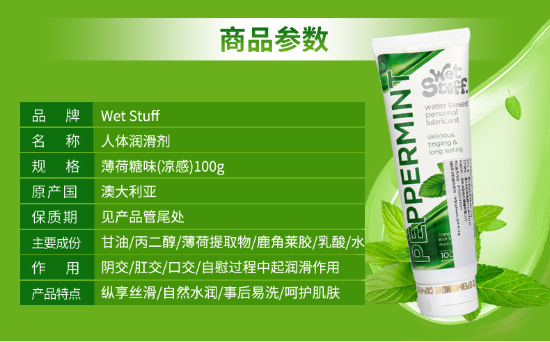澳洲Wet Stuff水果润滑液100g可口润滑草莓/焦糖/薄荷冰感
