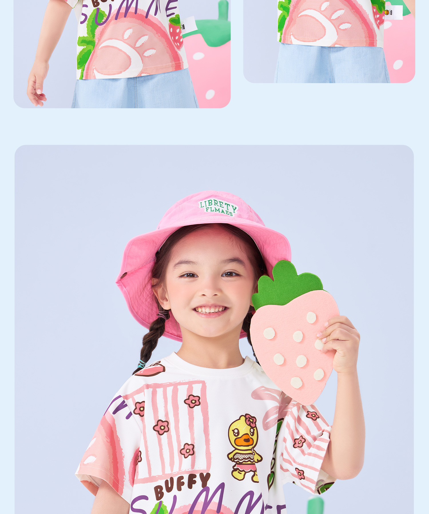 bduck小黄鸭童装夏季男童短袖T恤儿童夏装体恤女童宝宝半袖上衣小童t90-130 BF2601002