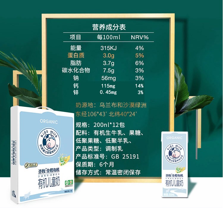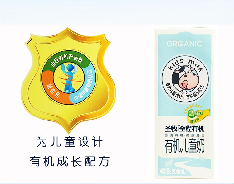 丨有机丨圣牧 儿童牛奶200ml*12支/箱 无香精 自然香醇 有机认证 品质保证