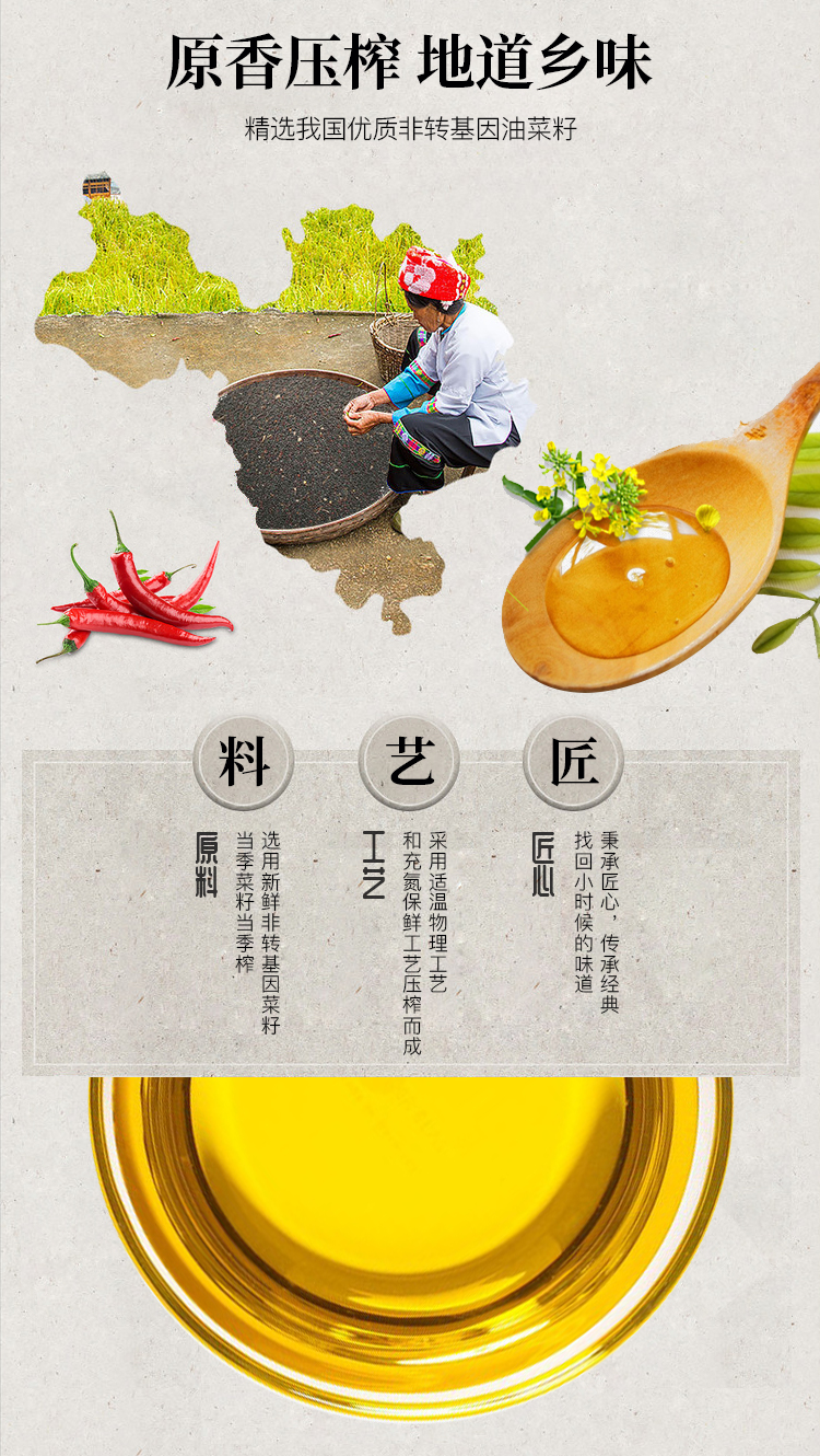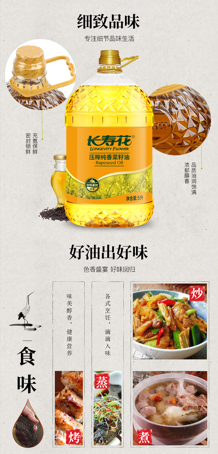 【高圆圆推荐】长寿花纯香菜籽油5L*1大容量物理压榨食用油植物油