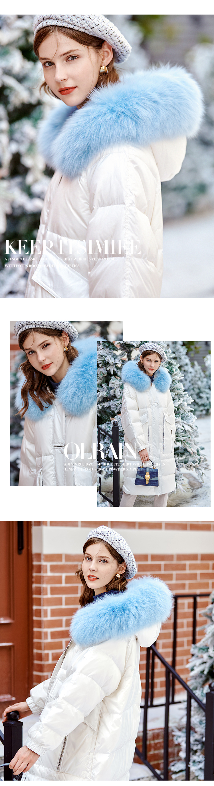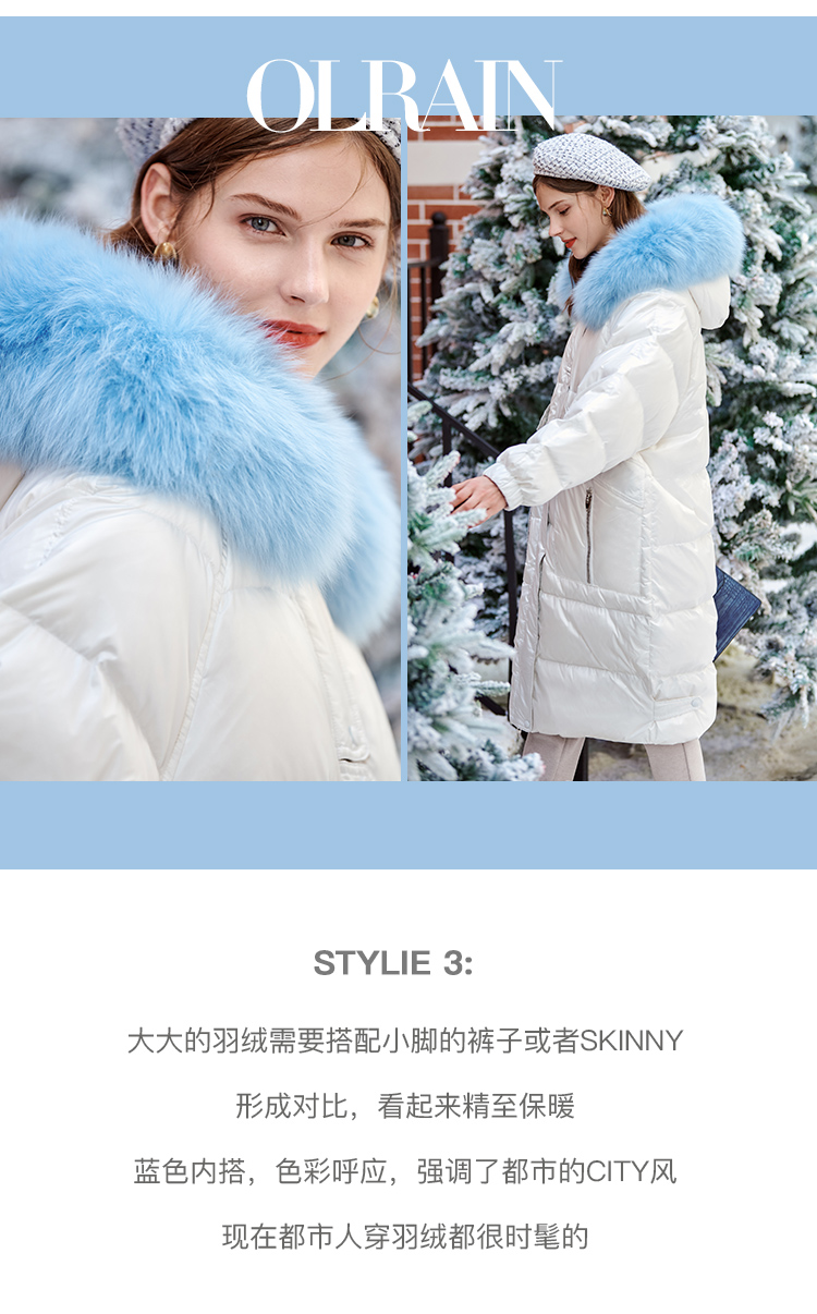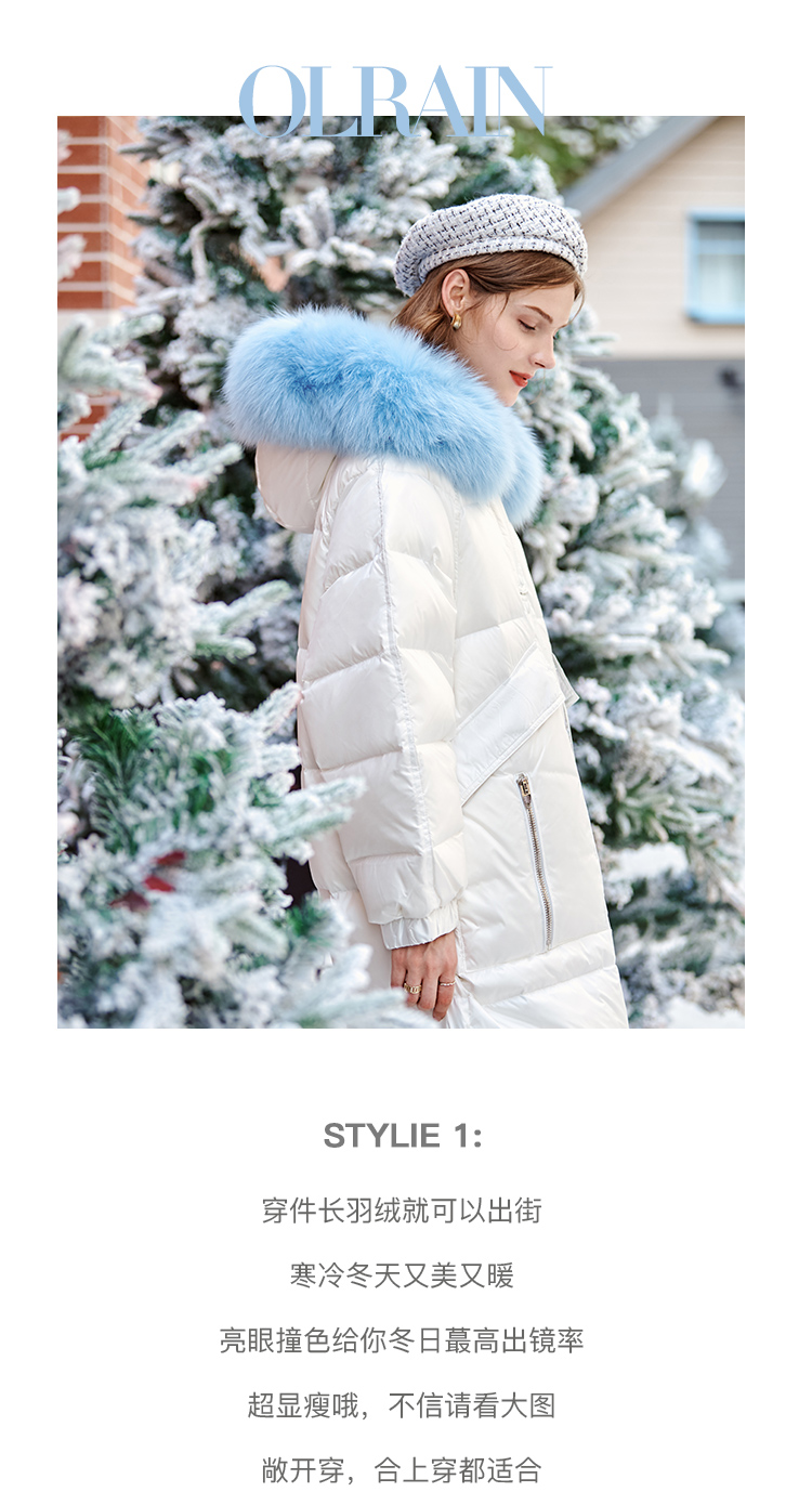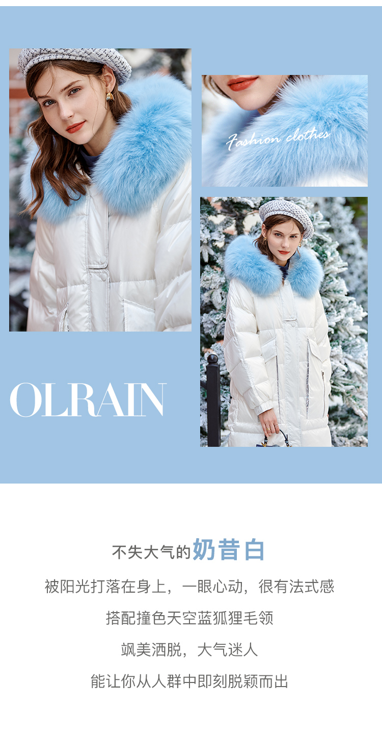 欧芮儿羽绒服女2025年新款宽松显瘦大狐狸毛领连帽韩版保暖中长款