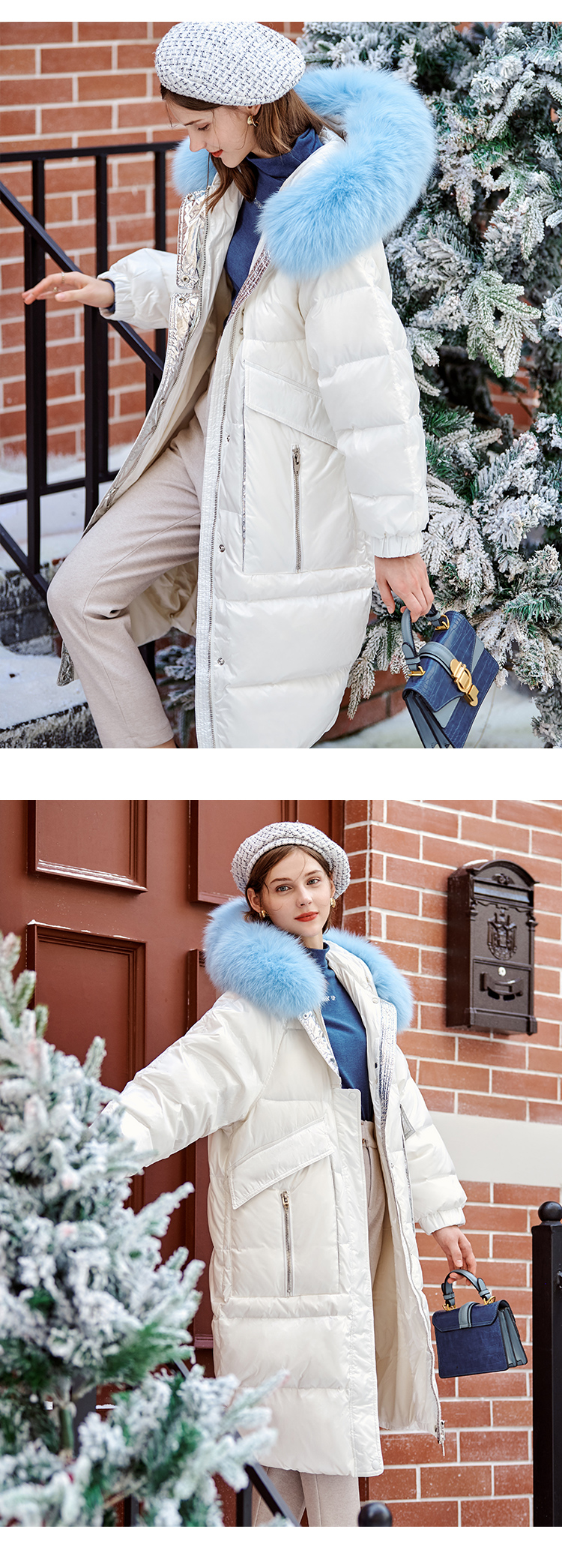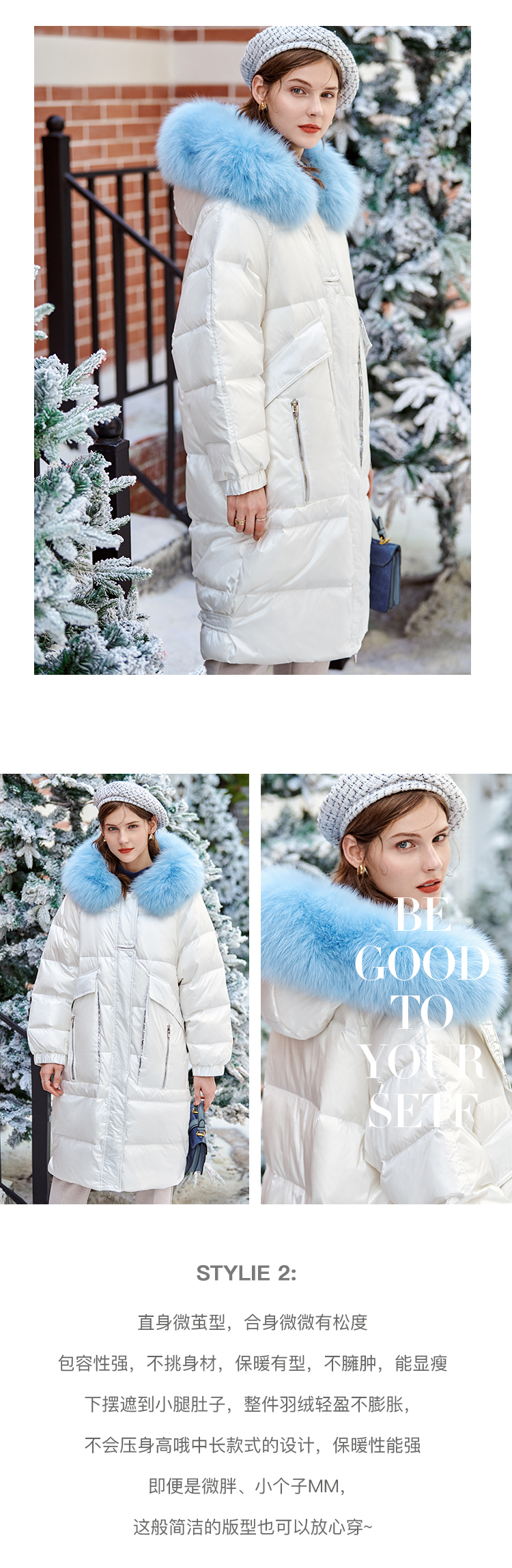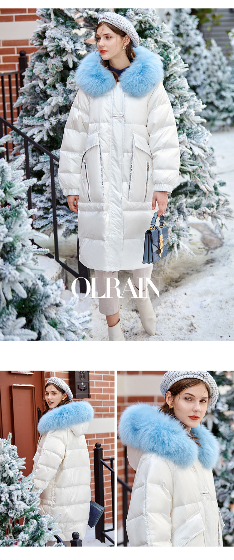 欧芮儿羽绒服女2025年新款宽松显瘦大狐狸毛领连帽韩版保暖中长款