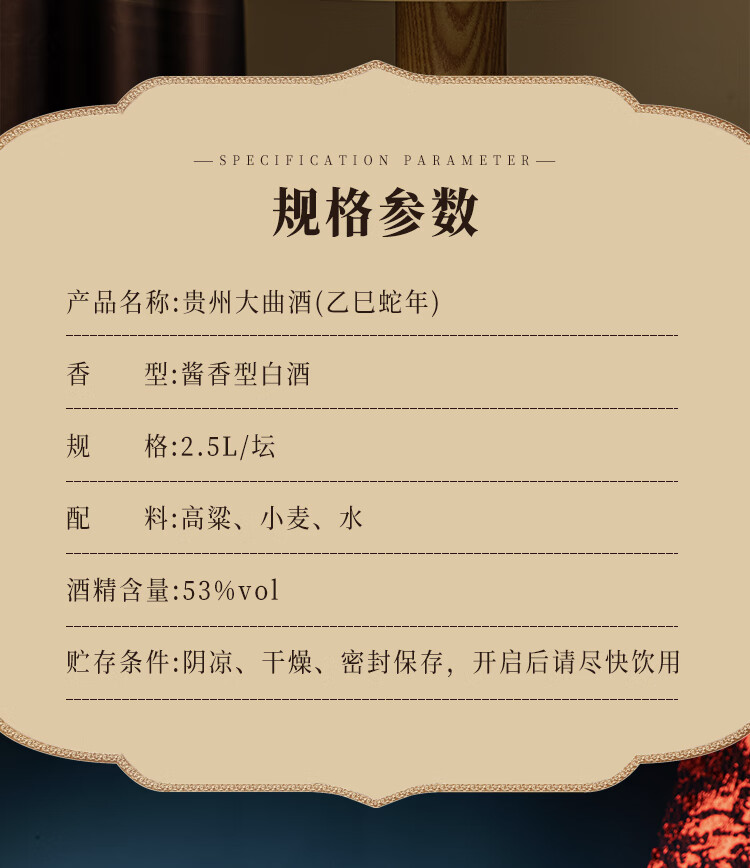 53度贵州大曲蛇酱香型白酒1*2500ML