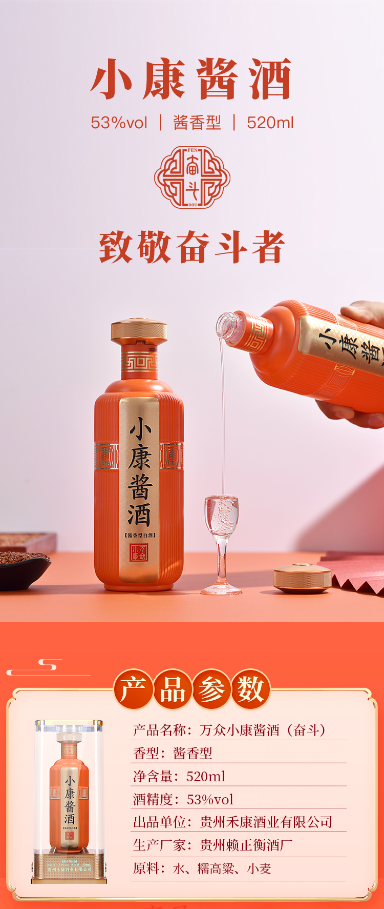 赖正衡万众小康酱酒 奋斗53度酱香白酒 礼盒装