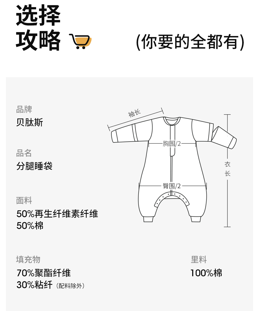 【贝肽斯】(肽暖)睡袋婴儿春秋冬款恒温宝宝分腿儿童防踢被四季通用