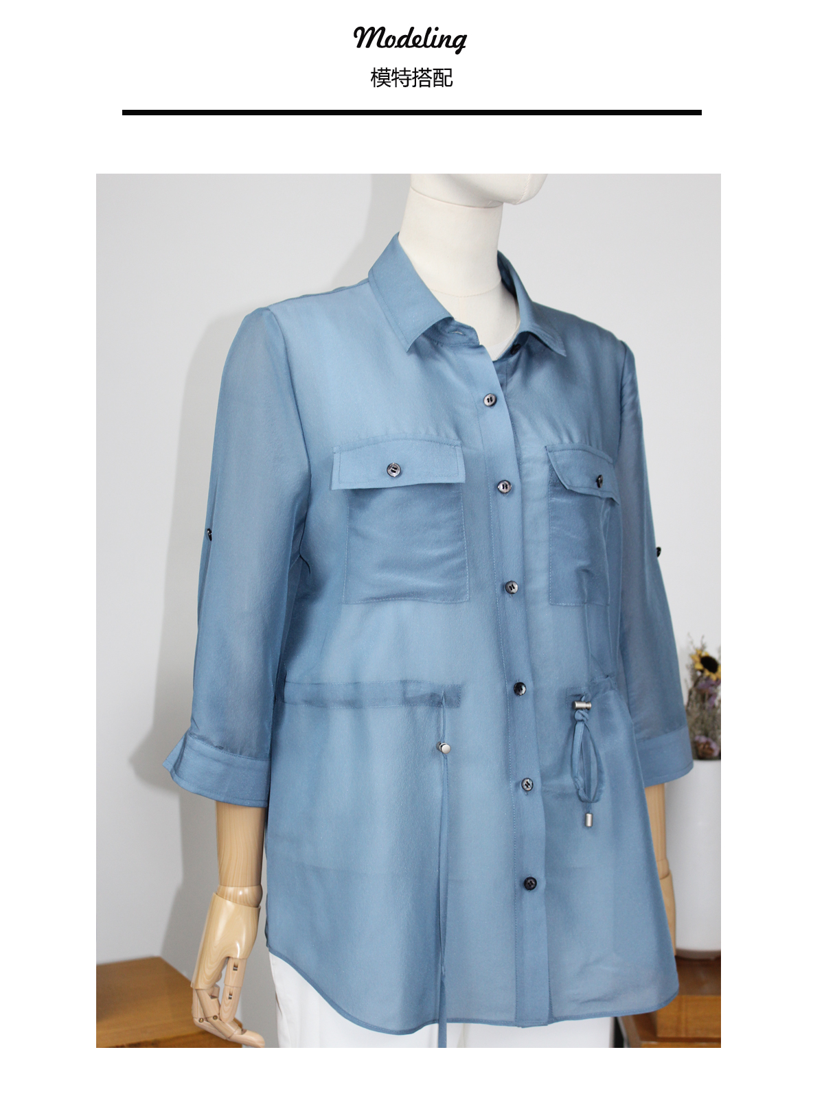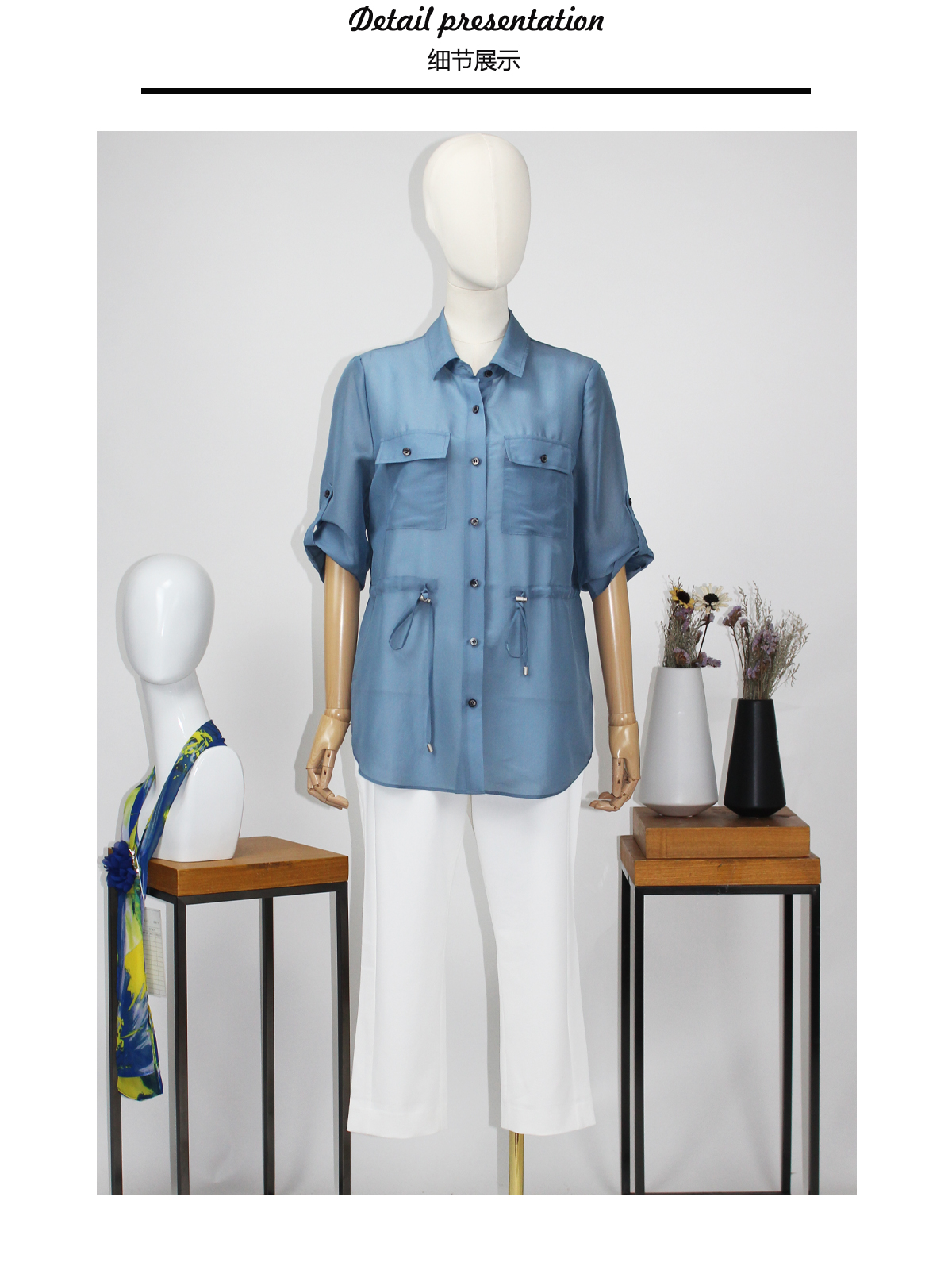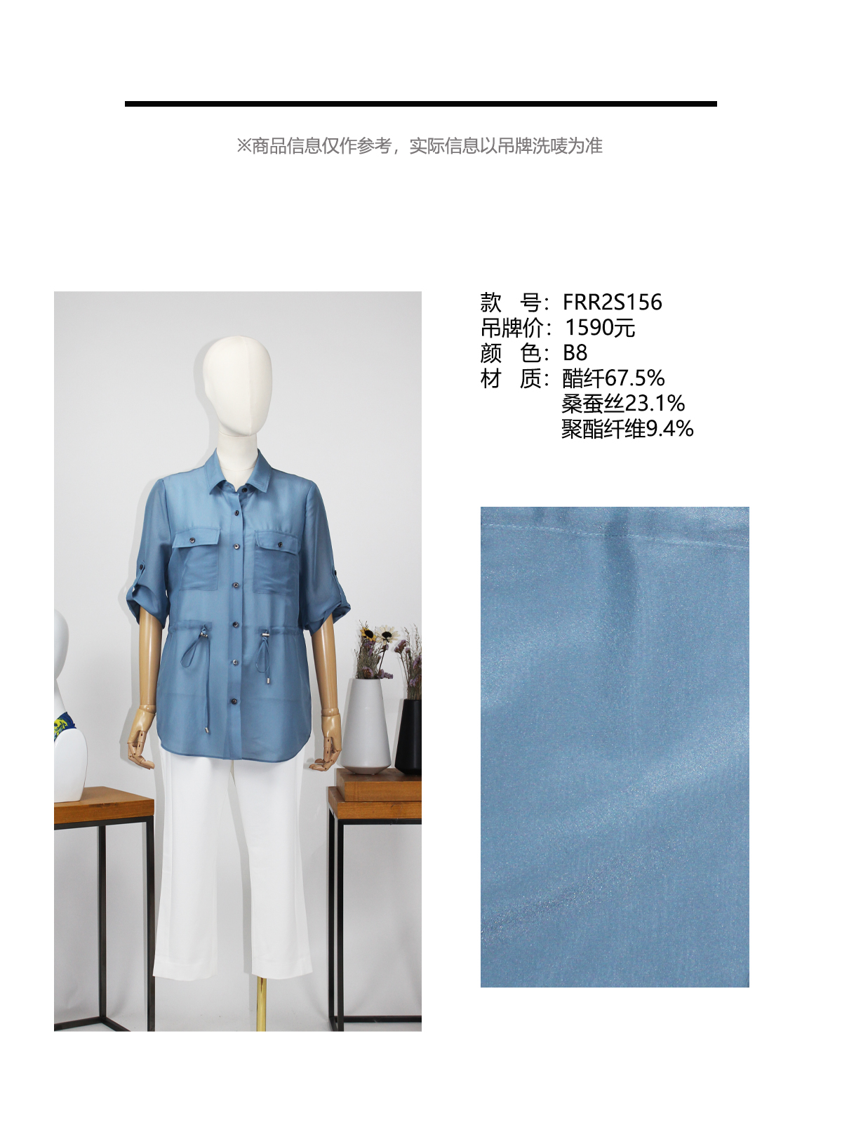 FOCALS福柯斯春夏新款可调节七分袖工装风休闲纯色衬衫FRR2S156B8