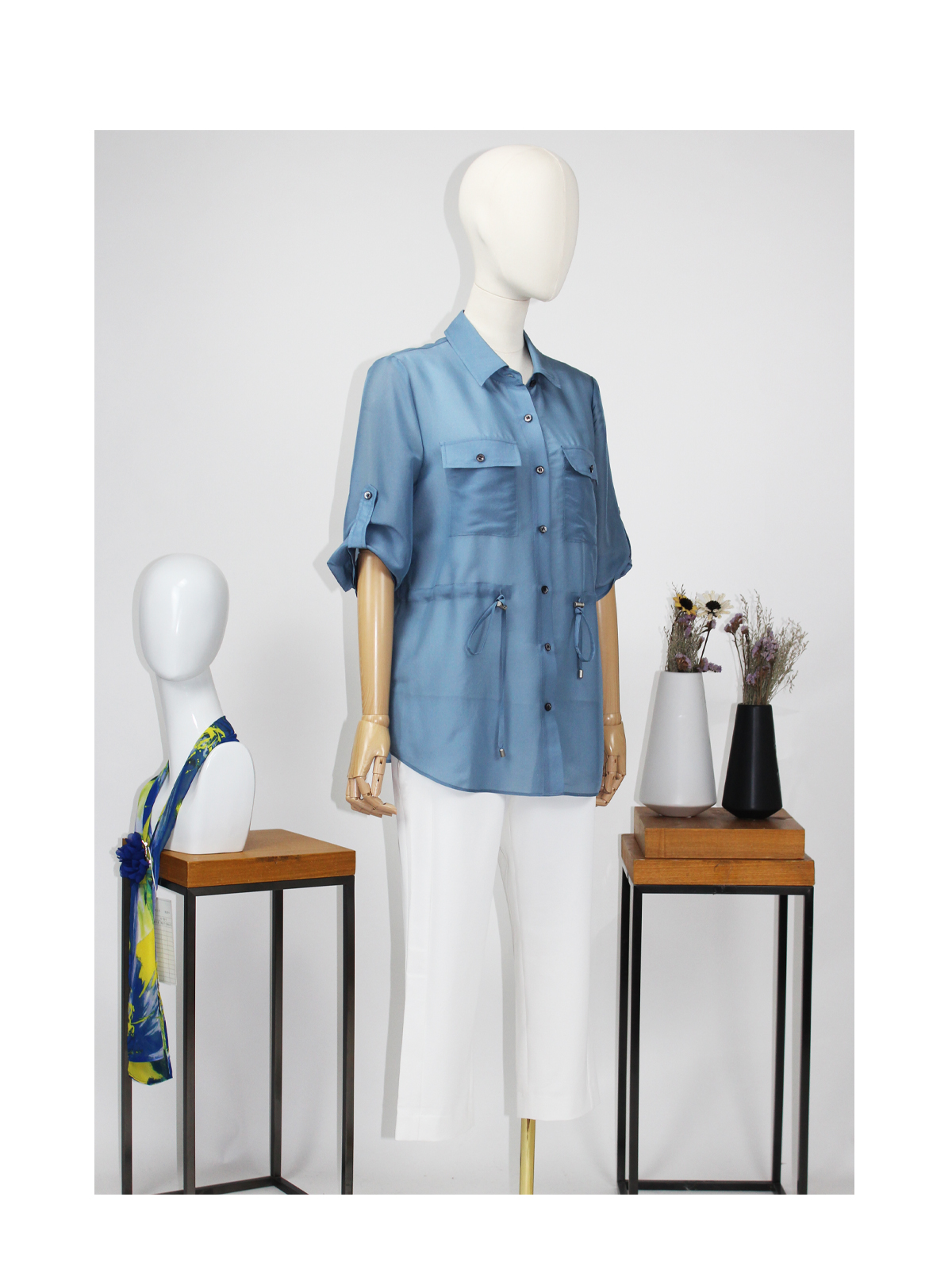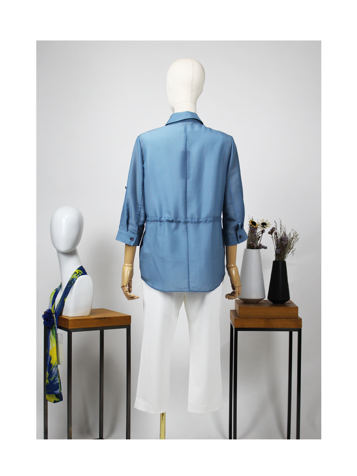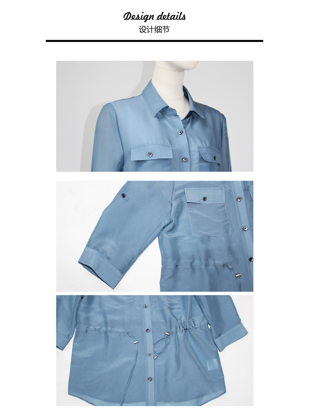 FOCALS福柯斯春夏新款可调节七分袖工装风休闲纯色衬衫FRR2S156B8