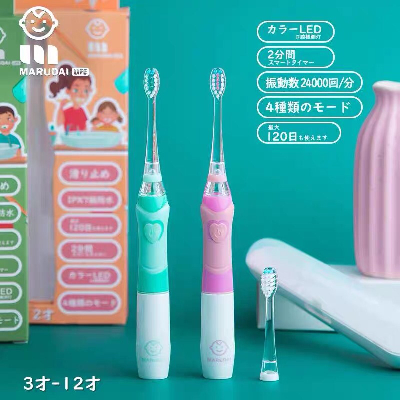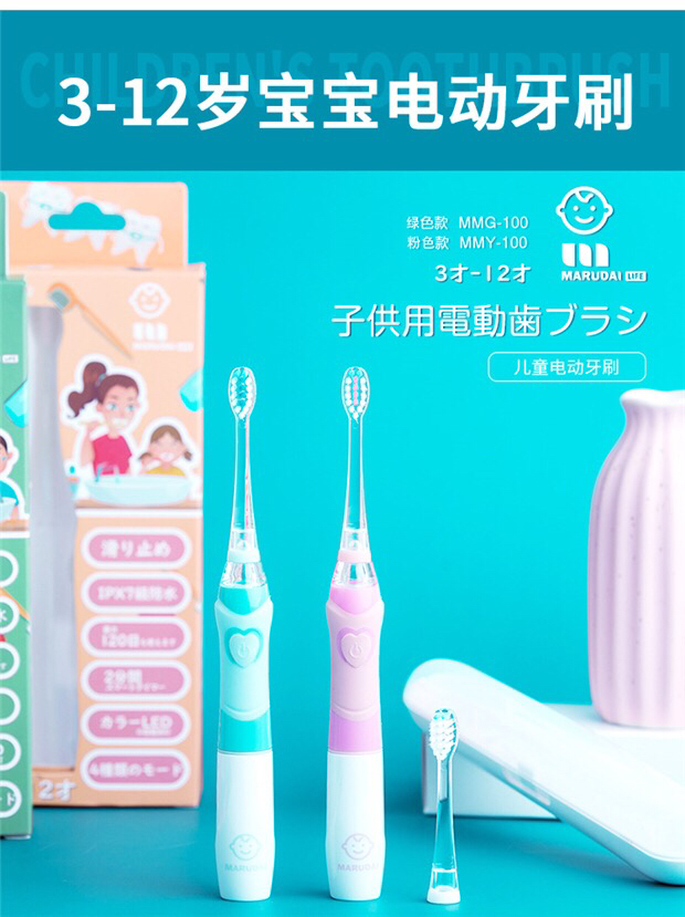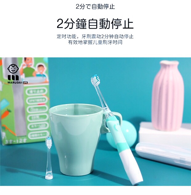 日本marudai丸太婴儿宝宝儿童电动牙刷0-3-6-12岁软硬毛替换刷头-会员6折