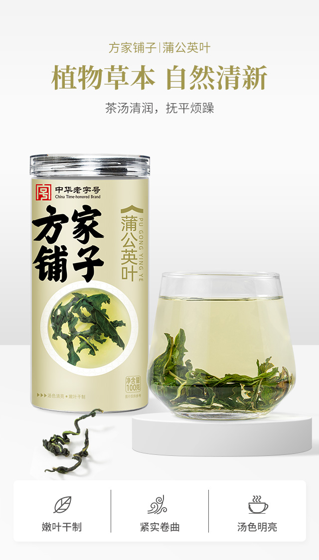 【方家铺子蒲公英叶】100g*1瓶 产地严选 饱满鲜嫩 茶汤明亮 入口甘醇 清香浓郁