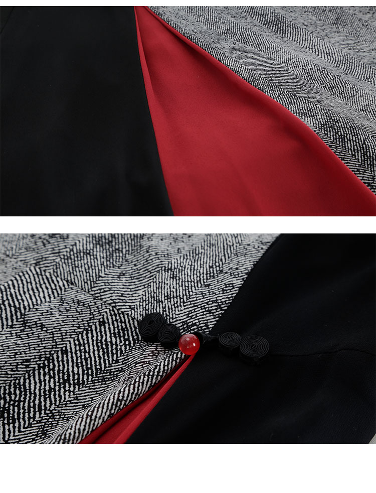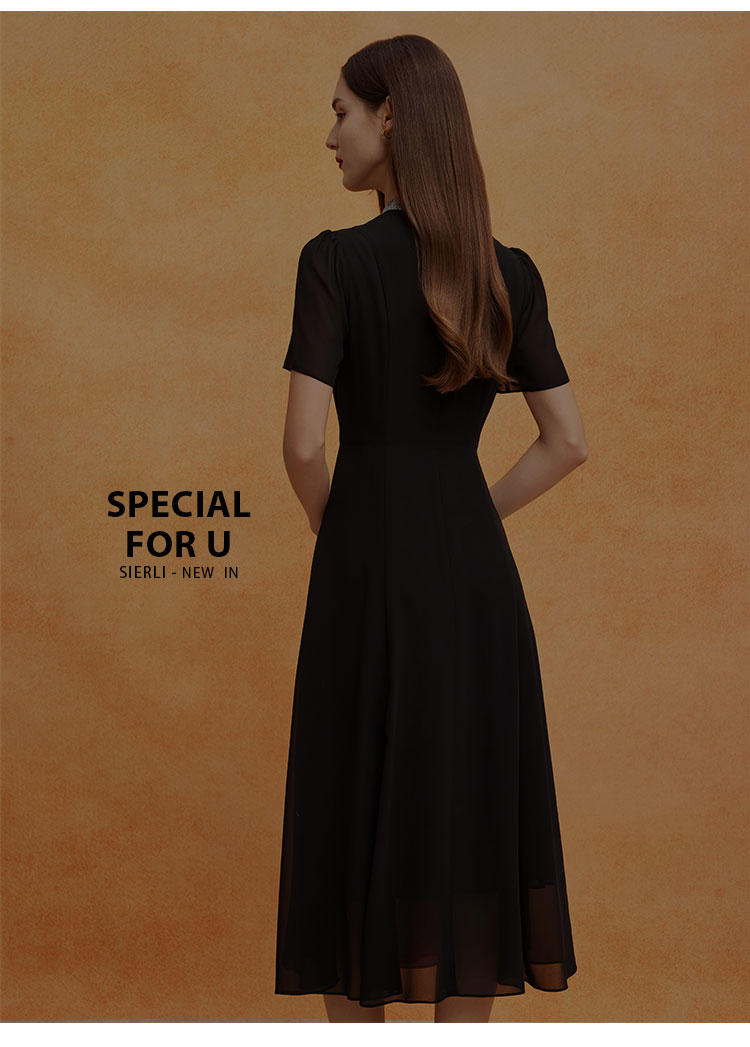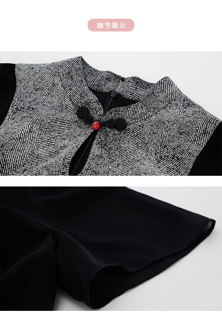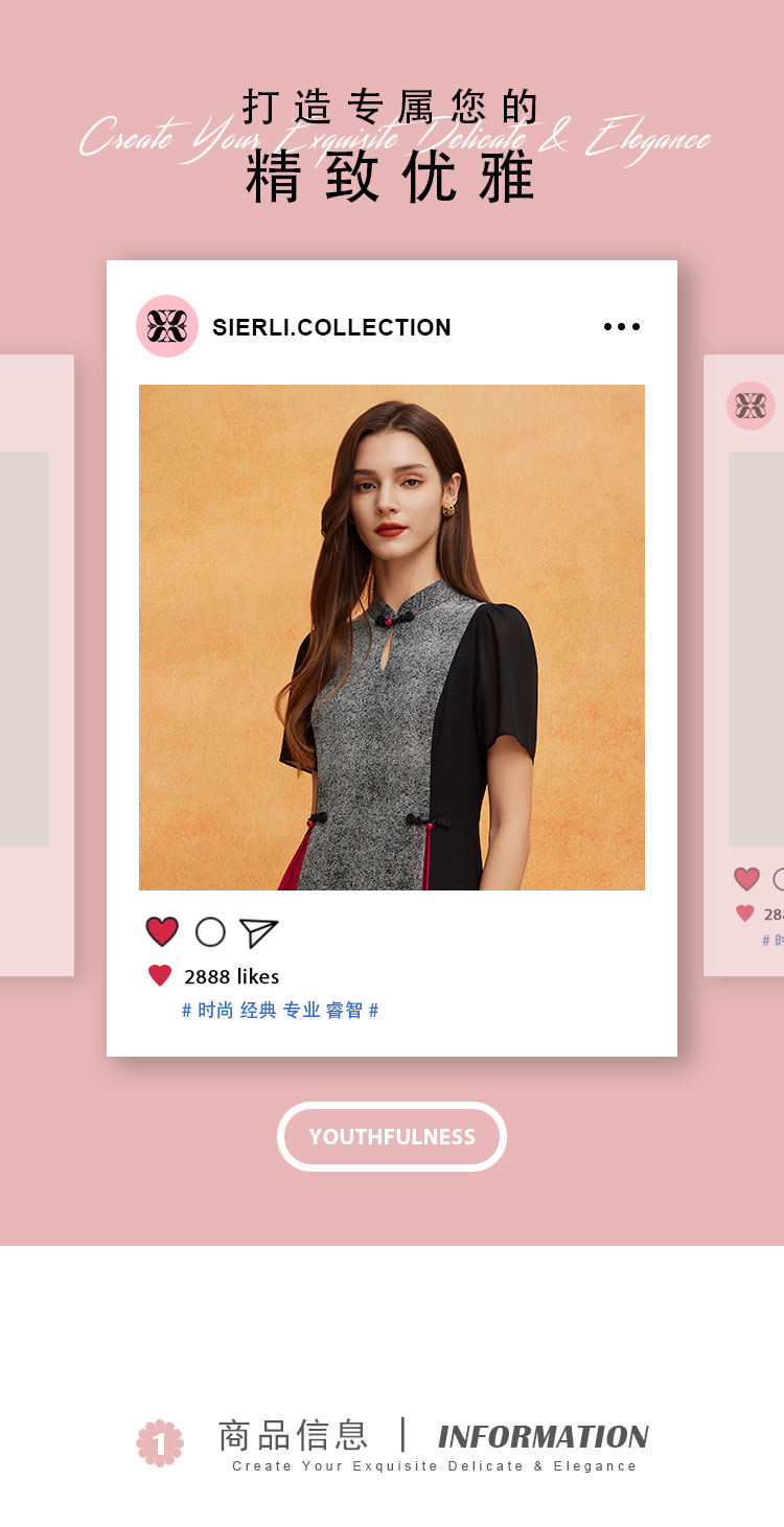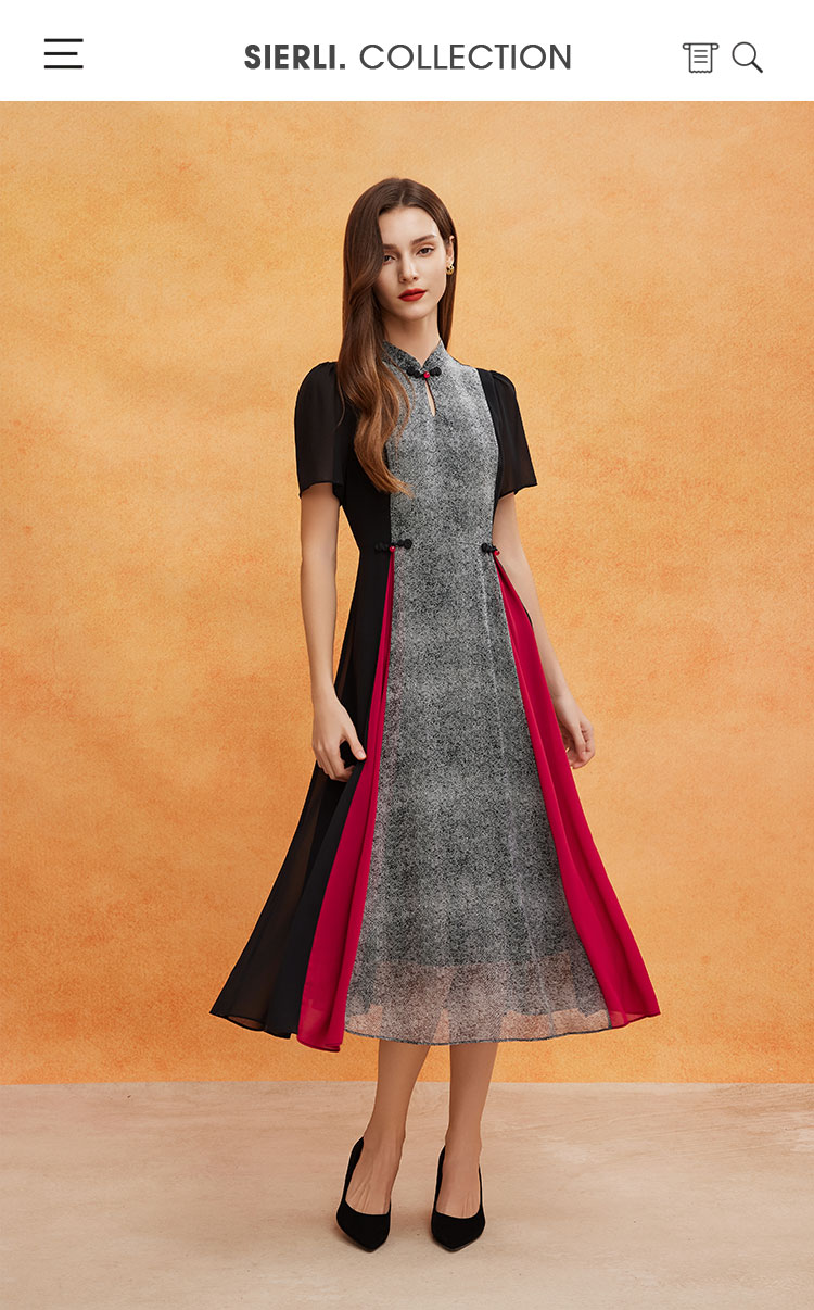 QF813斯尔丽2025新款新国风改良版旗袍收腰放摆插片拼接印花优雅连衣裙