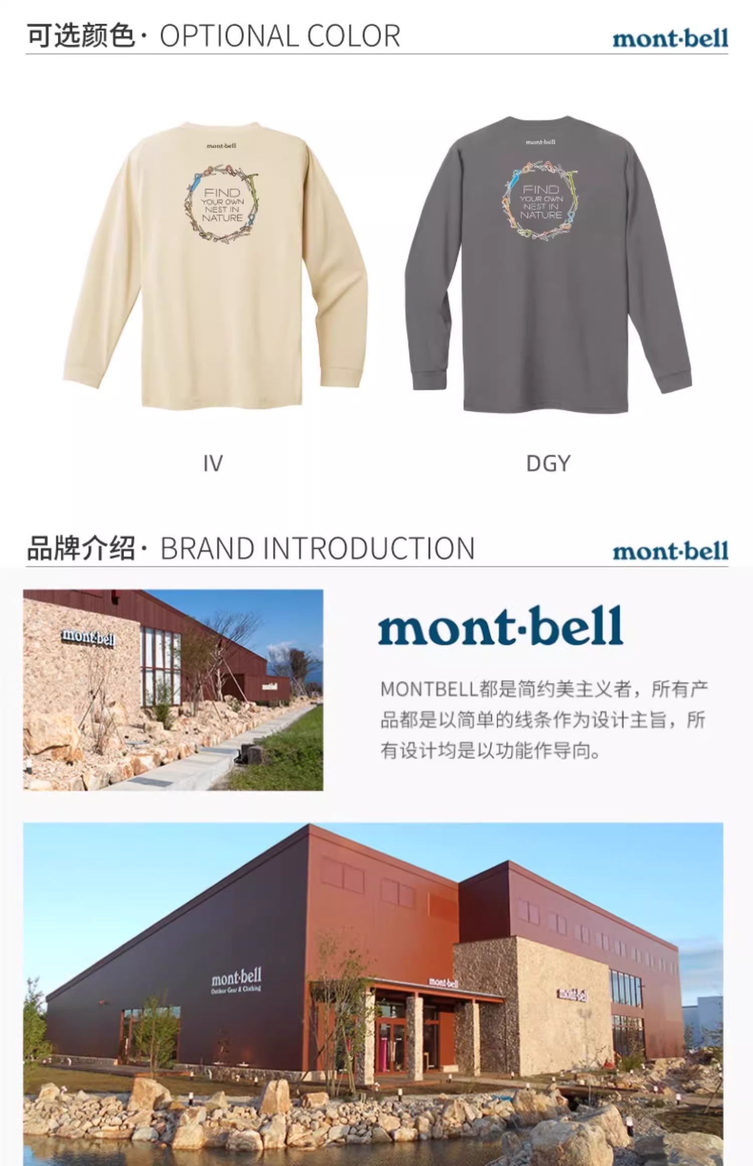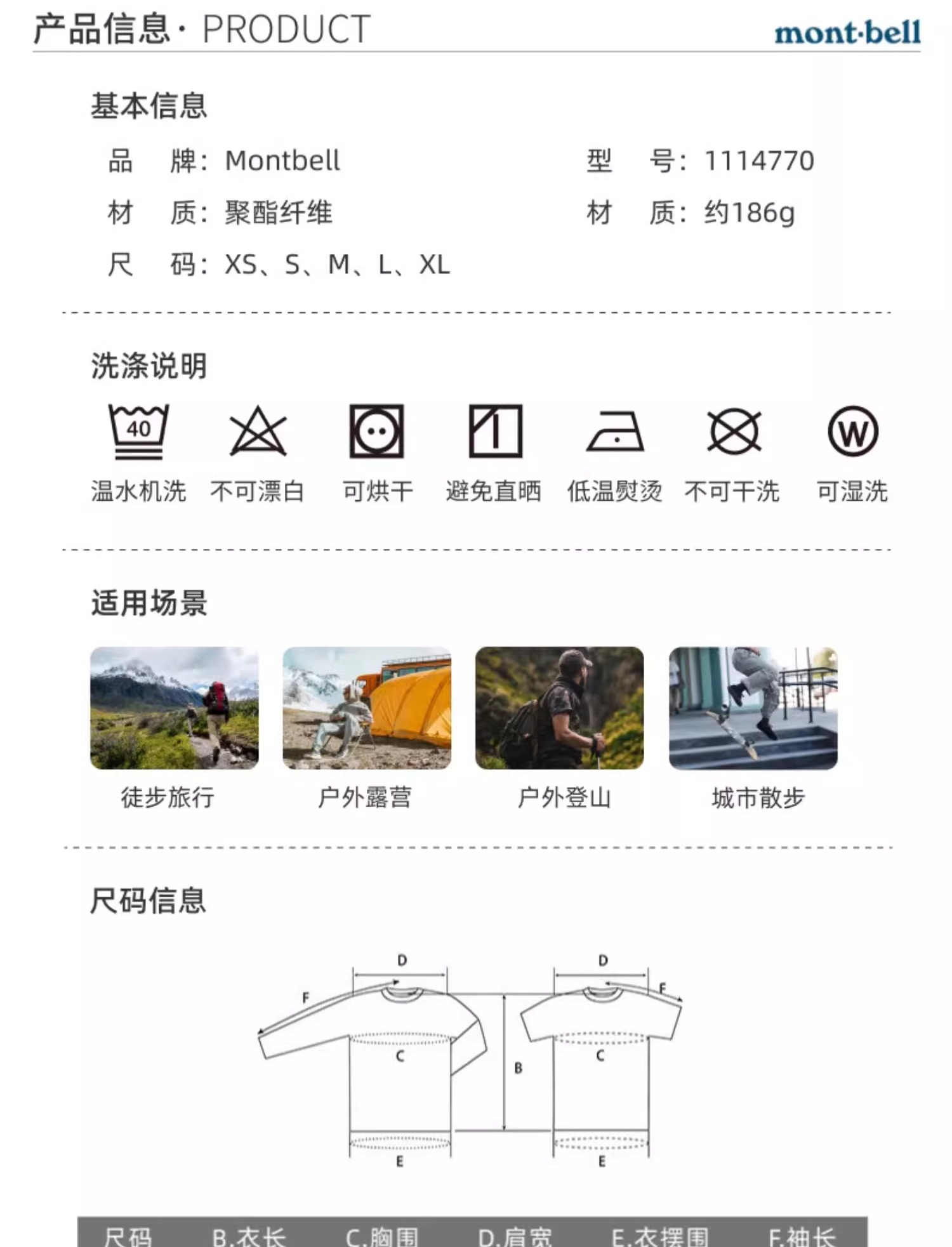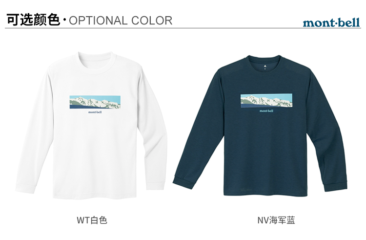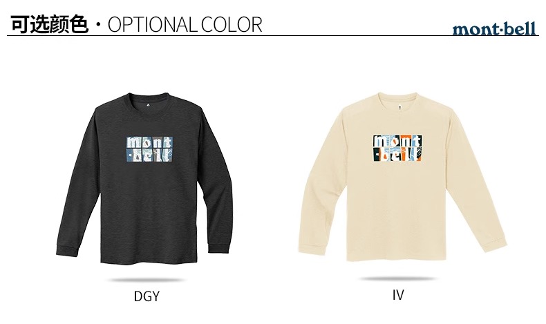 【男女同款】Montbell户外运动速干T恤日常通勤圆领长袖欧若风字母印花1114852/1114770/1114768