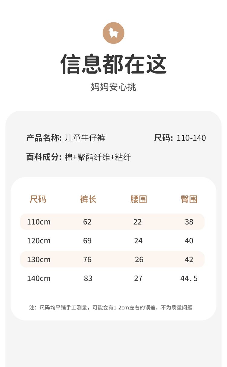 【110-140】【MQDmini】男童春秋牛仔裤宽松百搭长裤