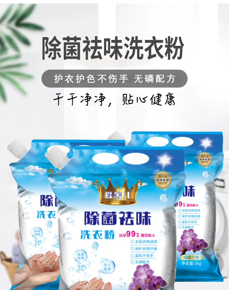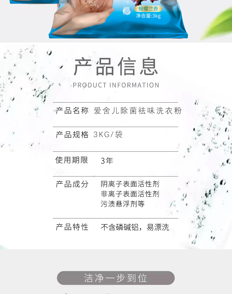 自营(菲小主)-爱舍儿除菌祛味洗衣粉3kg持久留香强力去污家用6斤实惠装机洗