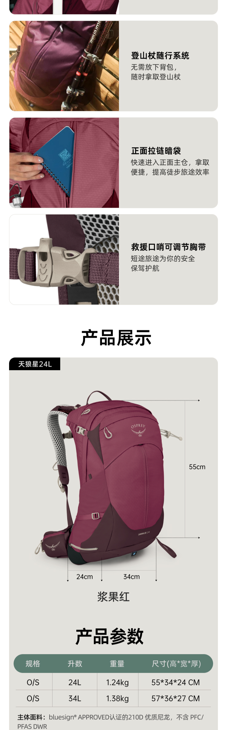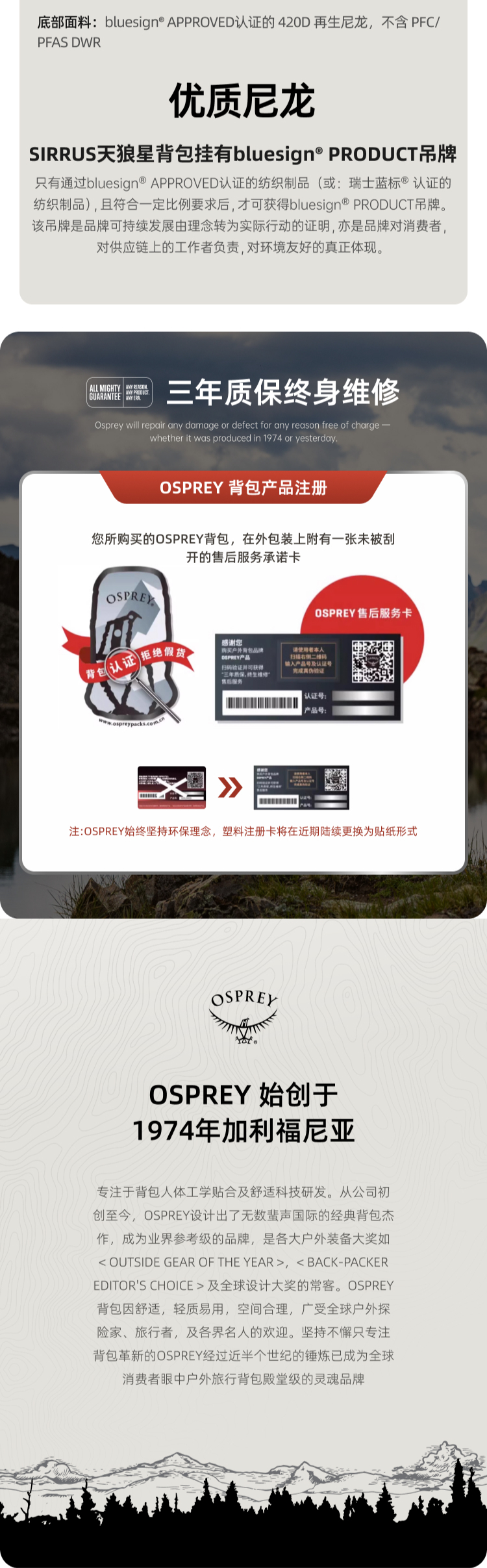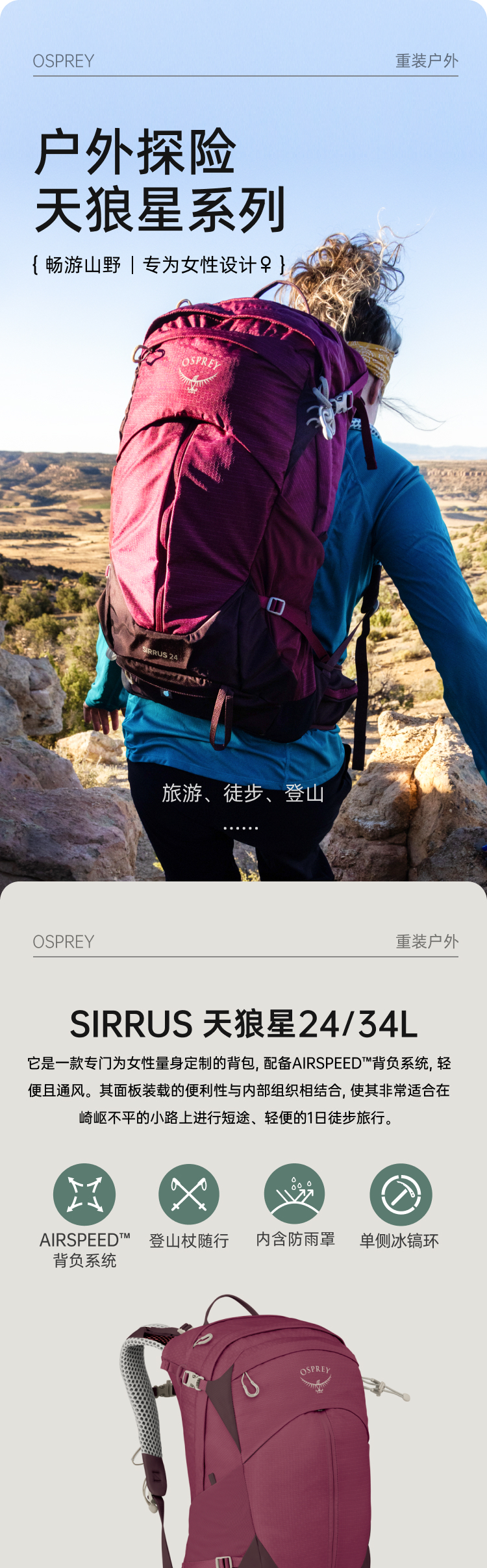 OSPREY SIRRUS 天狼星户外登山运动旅游徒步双肩背包女款