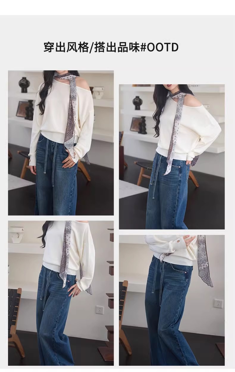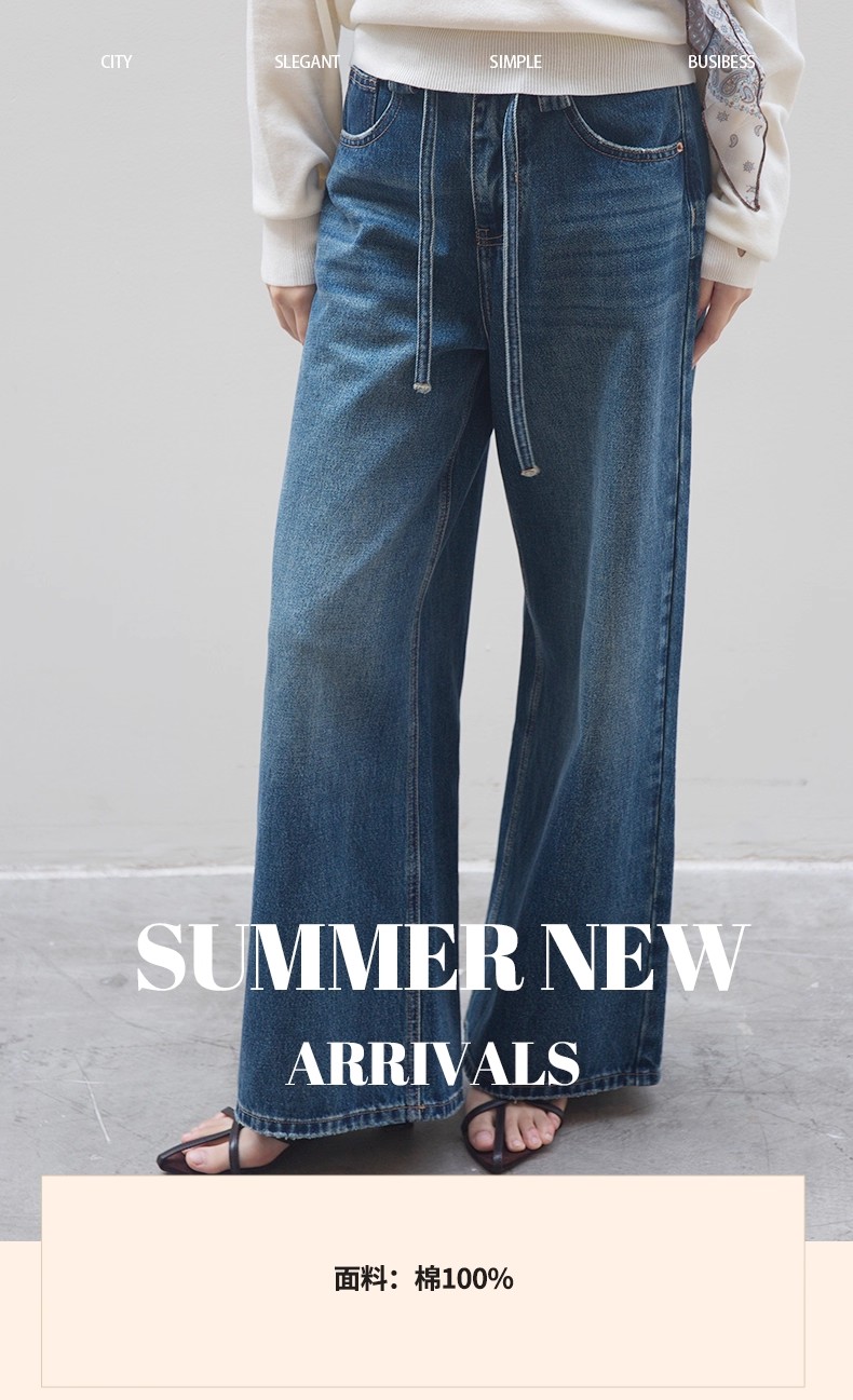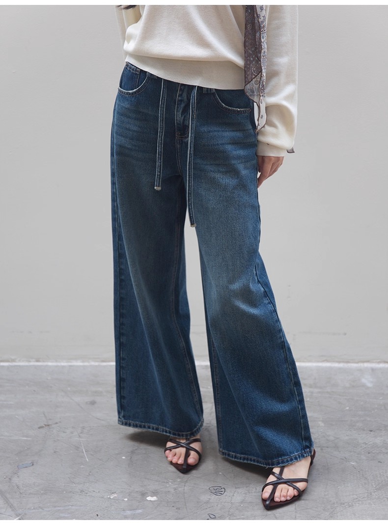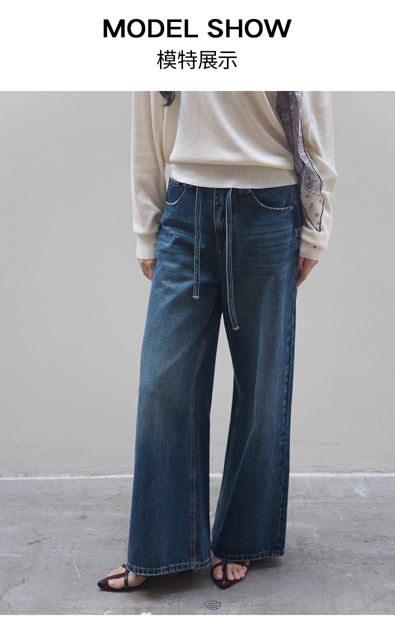 【门店同款】ENJOY秋季牛仔抽绳阔腿裤 163966088