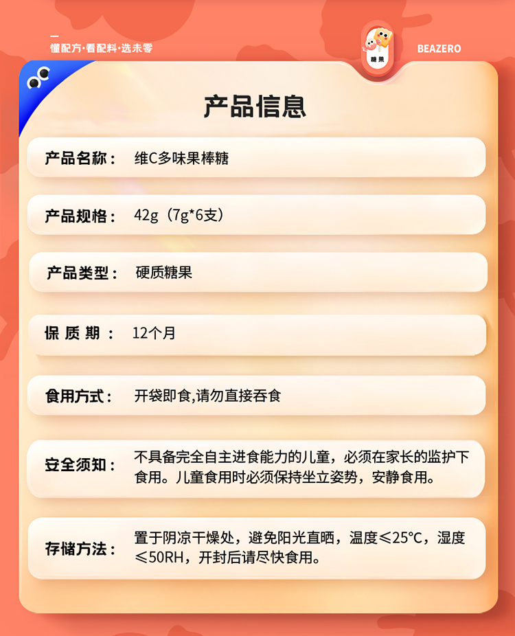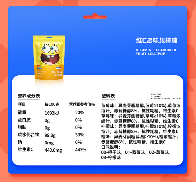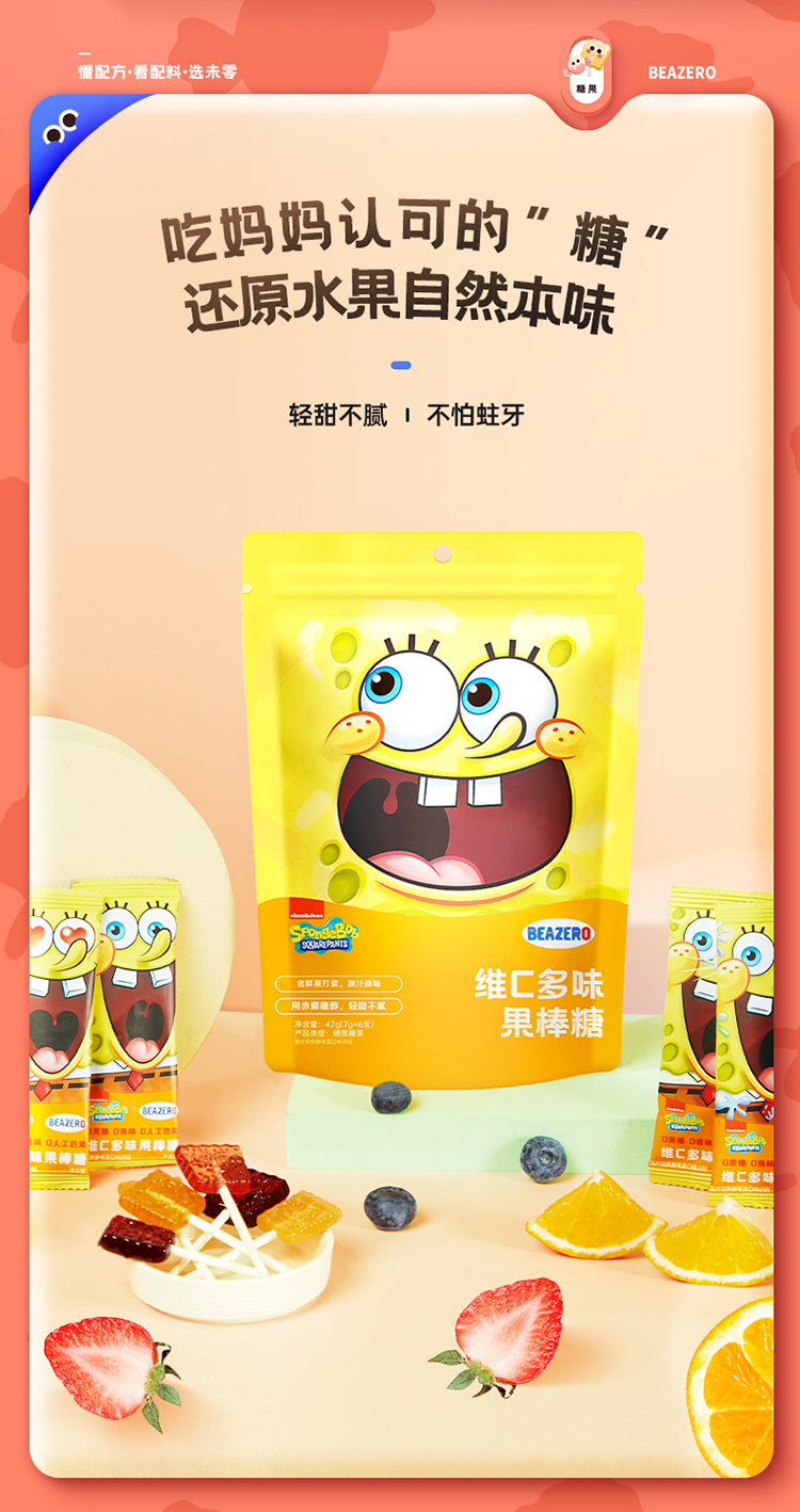 未零3袋海绵宝宝维C多味果棒糖42g(7g*6支)