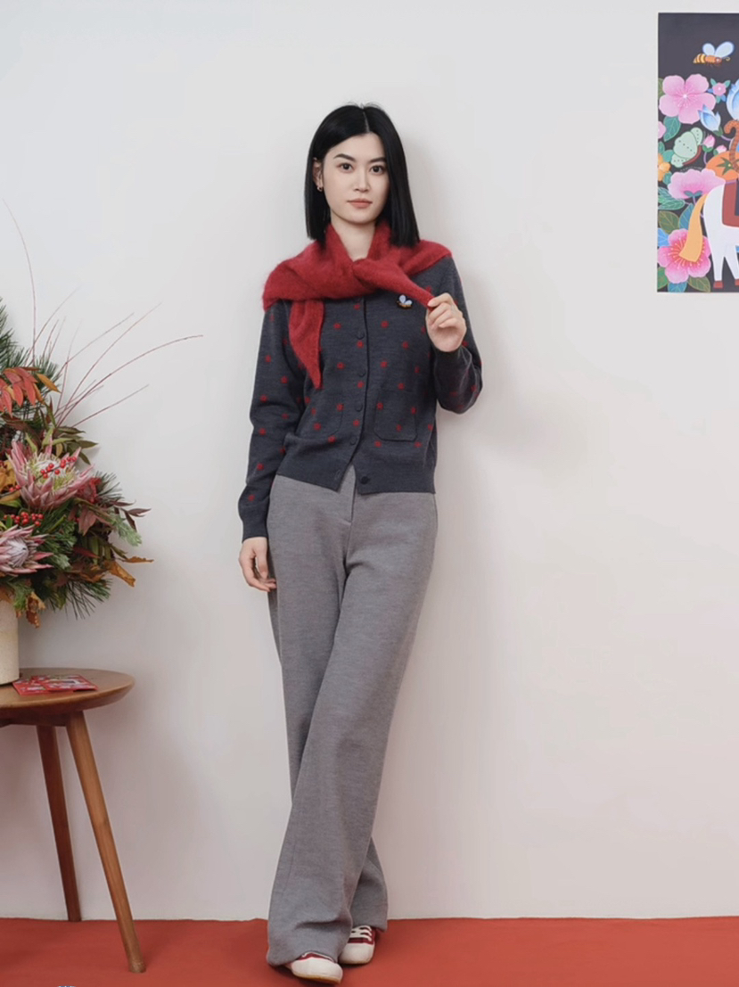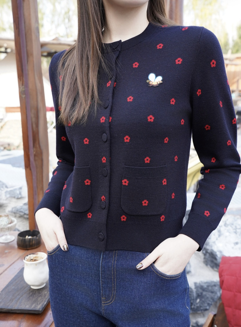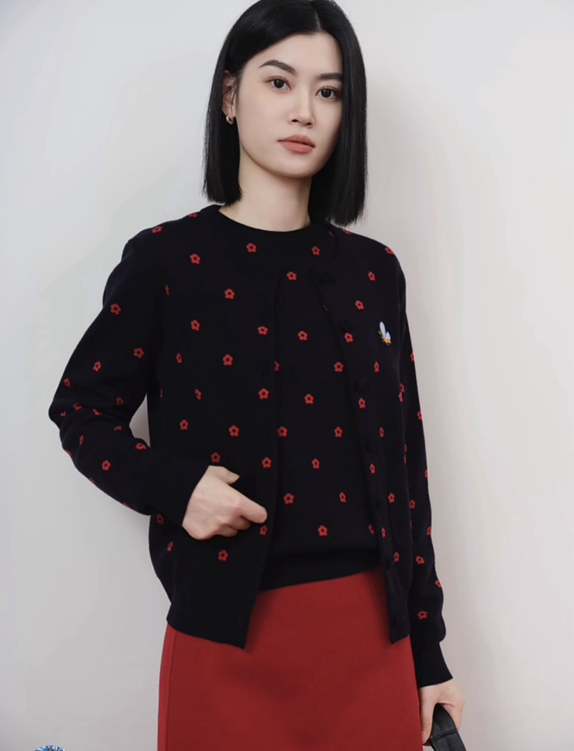 手感腻细柔软,体温感暖舒适,98%绵羊毛,密紧纺,双面织,再加上女天散花的般桃花,正是反双色的桃花案图,好玩且好看整,体细腻平,整紧密纺,看远像卫衣,实比则卫衣柔软多了,腻细多了,也温暖了多,内外搭穿都好看