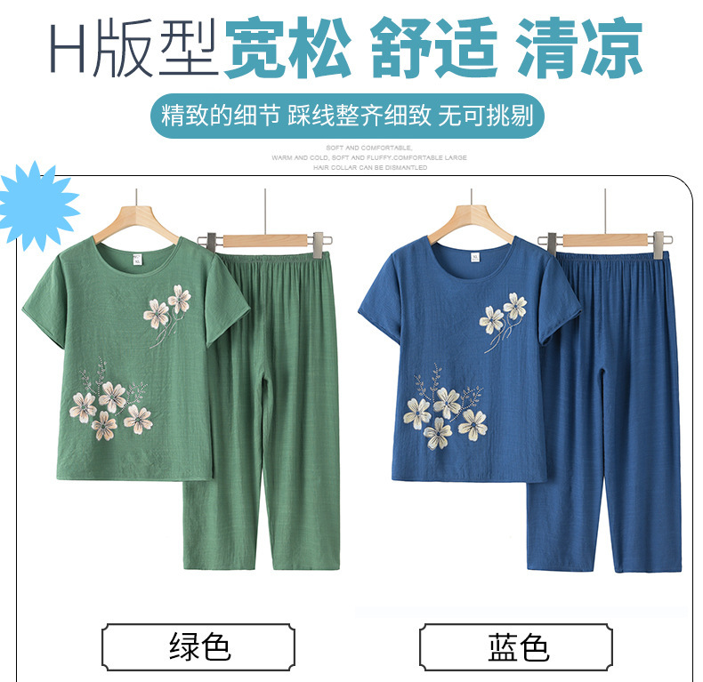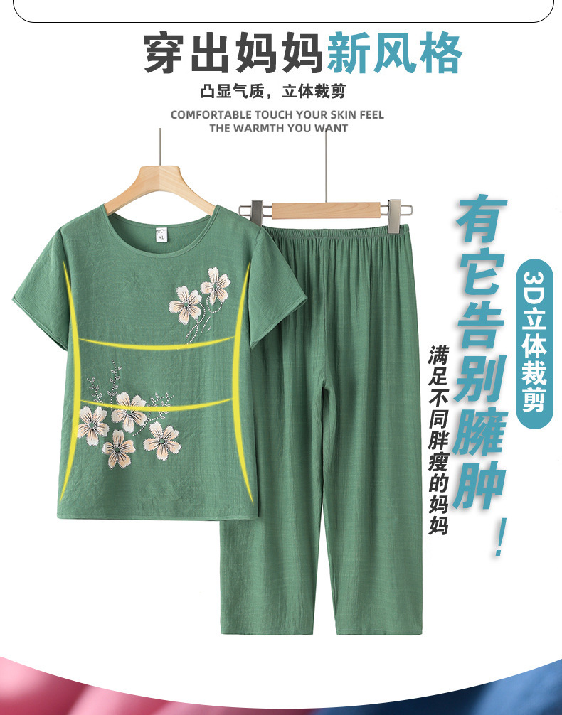 黛唯梵【百搭款奶奶装夏装套装】印花精美,透气棉麻面料,舒适宽松,老年人必备夏季衣服。
