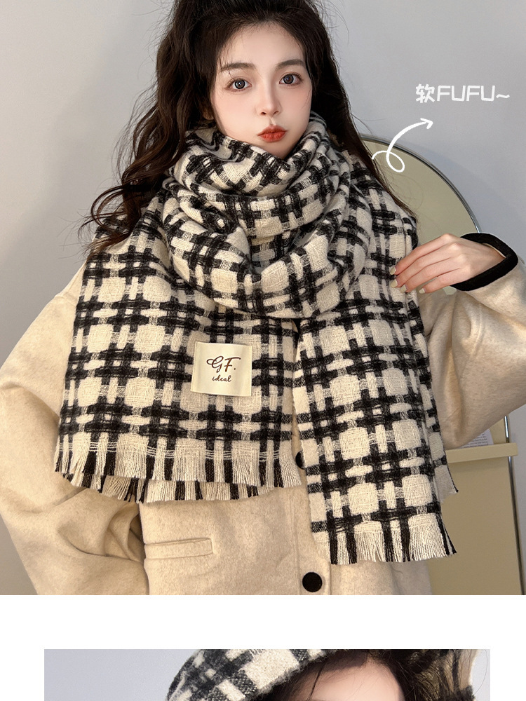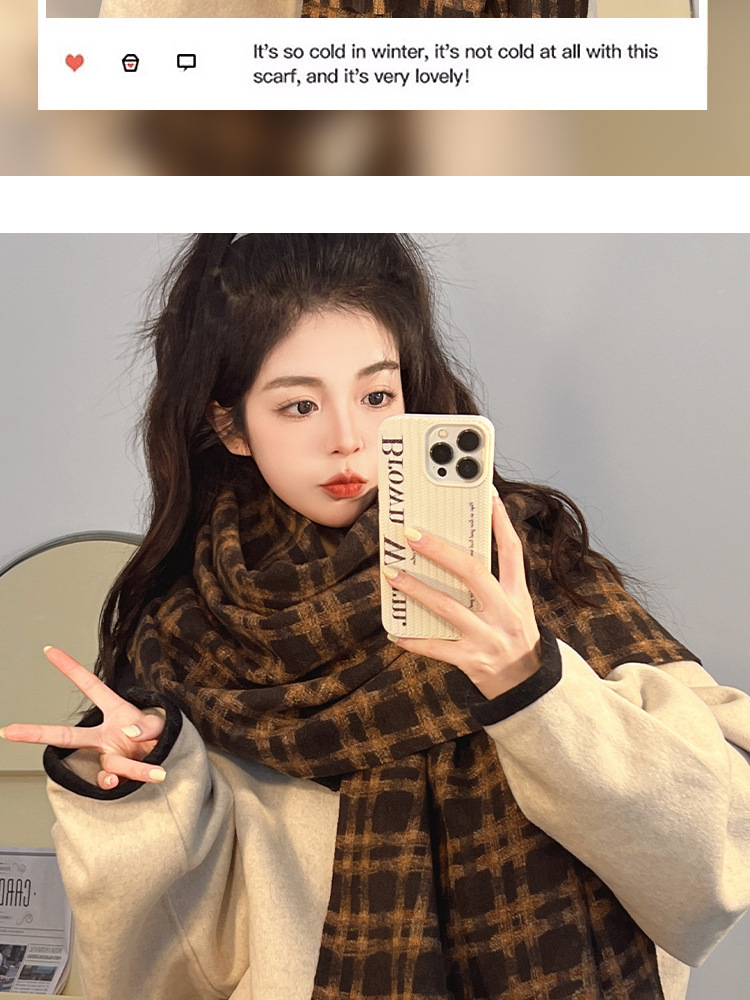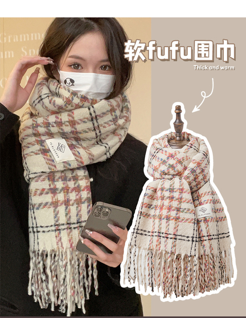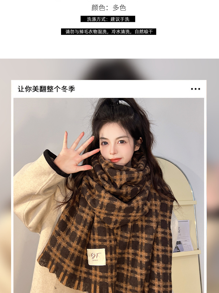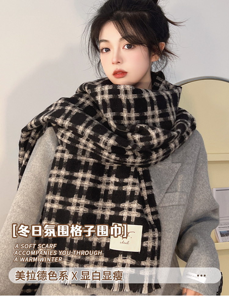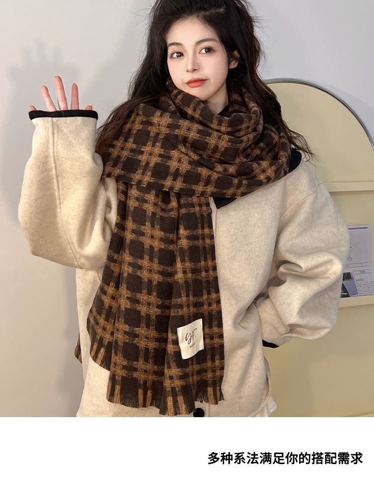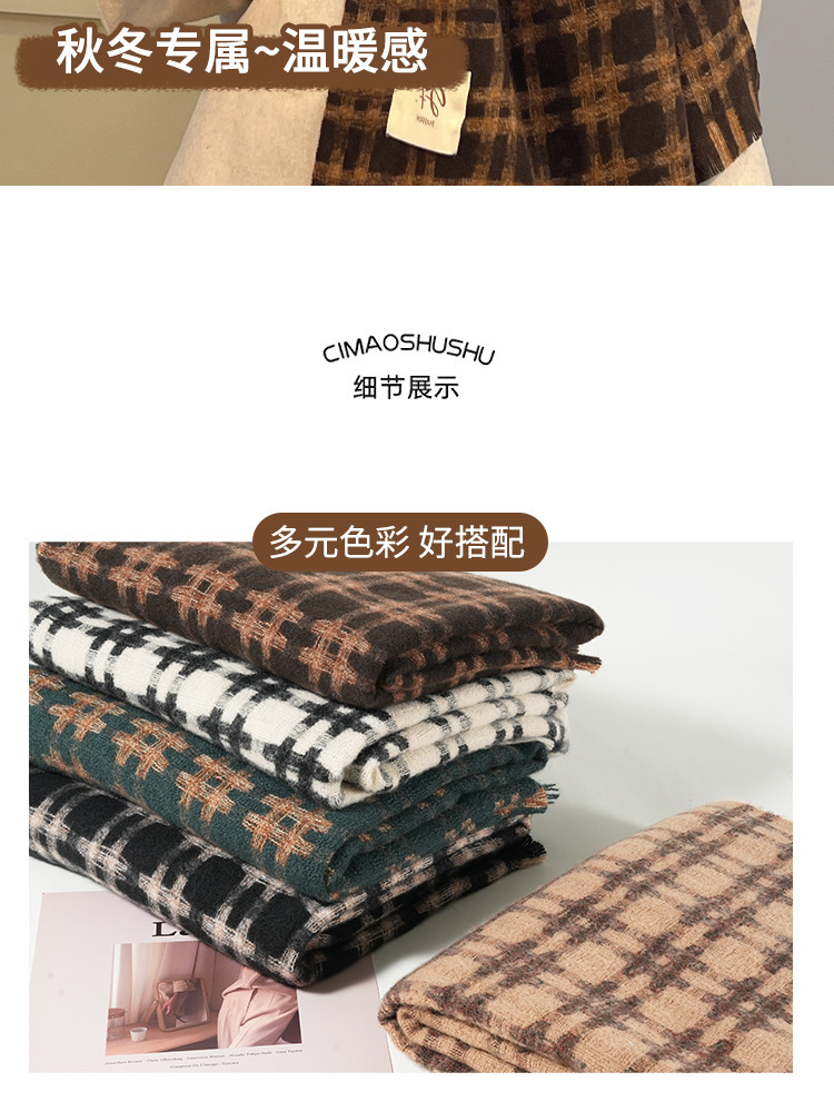 【秋冬新款软fufu韩系格子围巾 】复古潮流百搭围脖 柔软舒适保暖 围脖披肩两用加厚