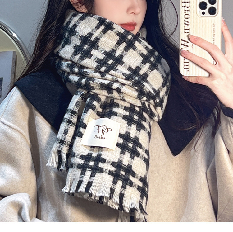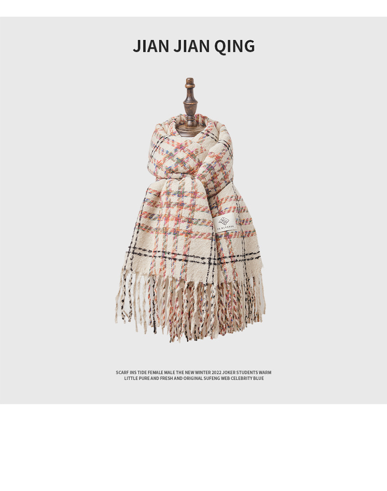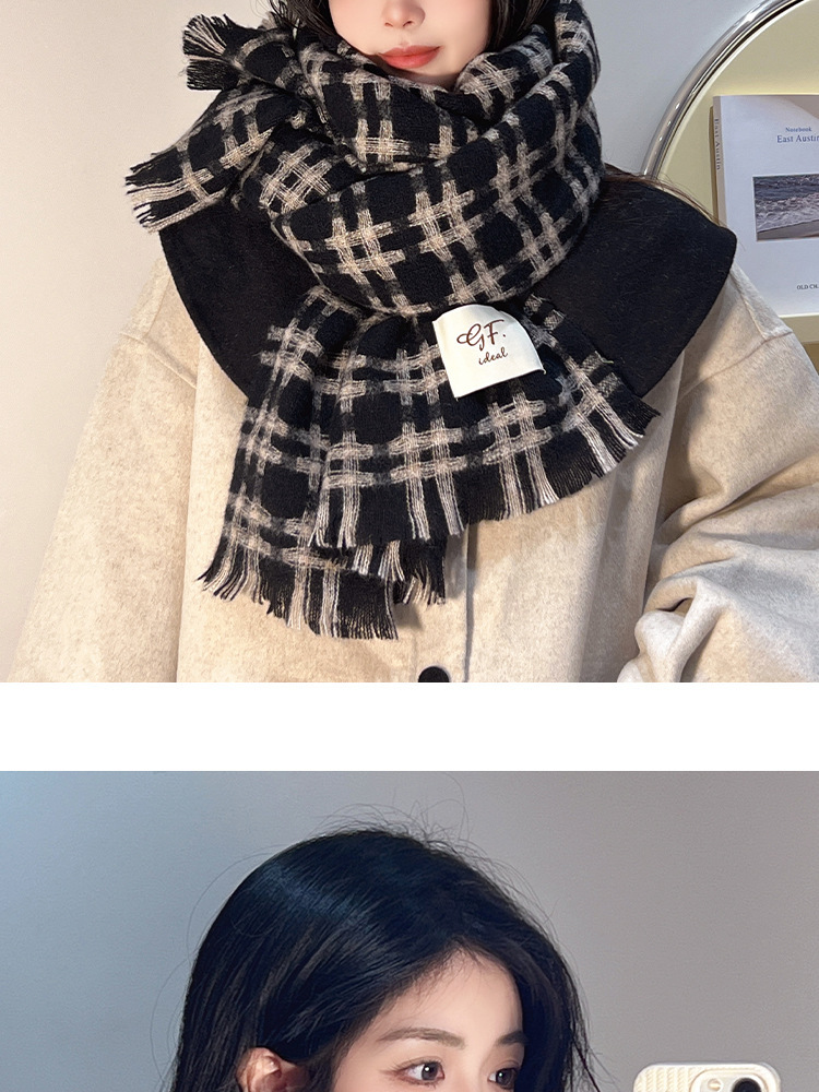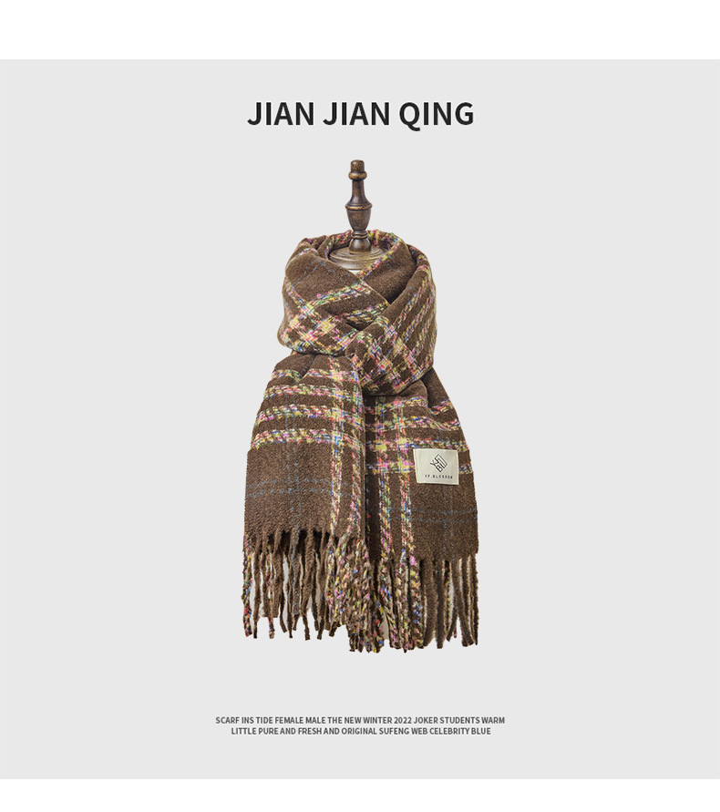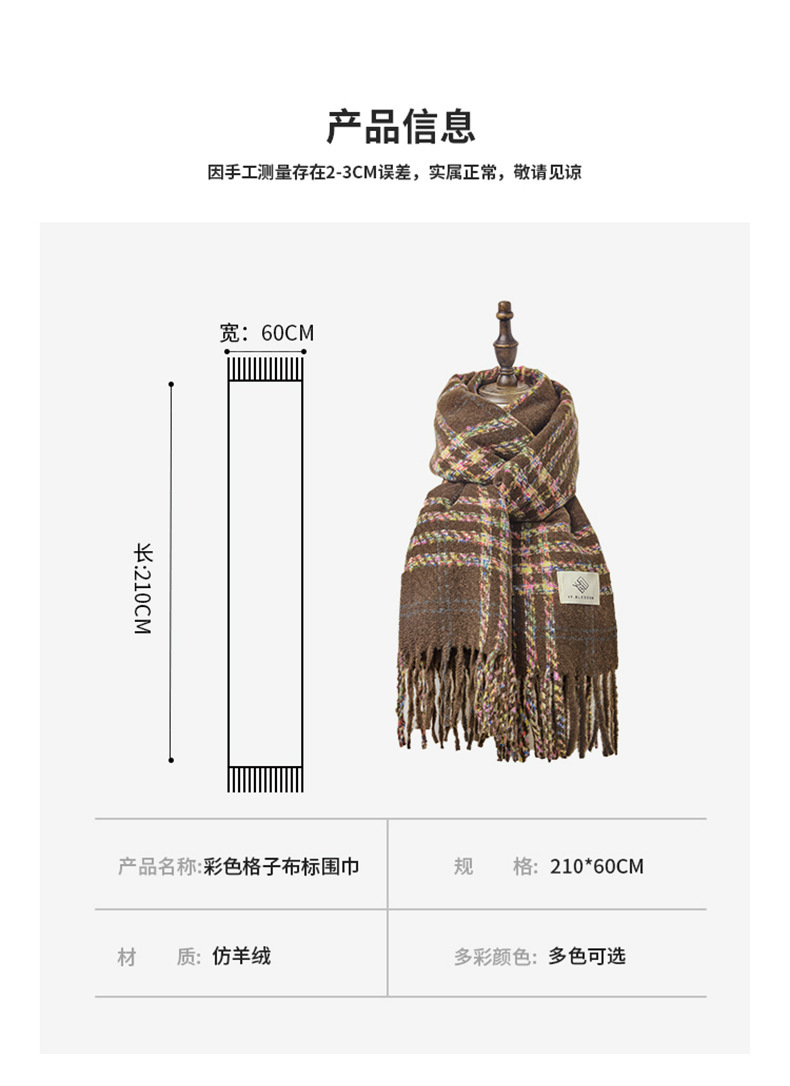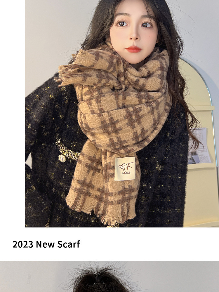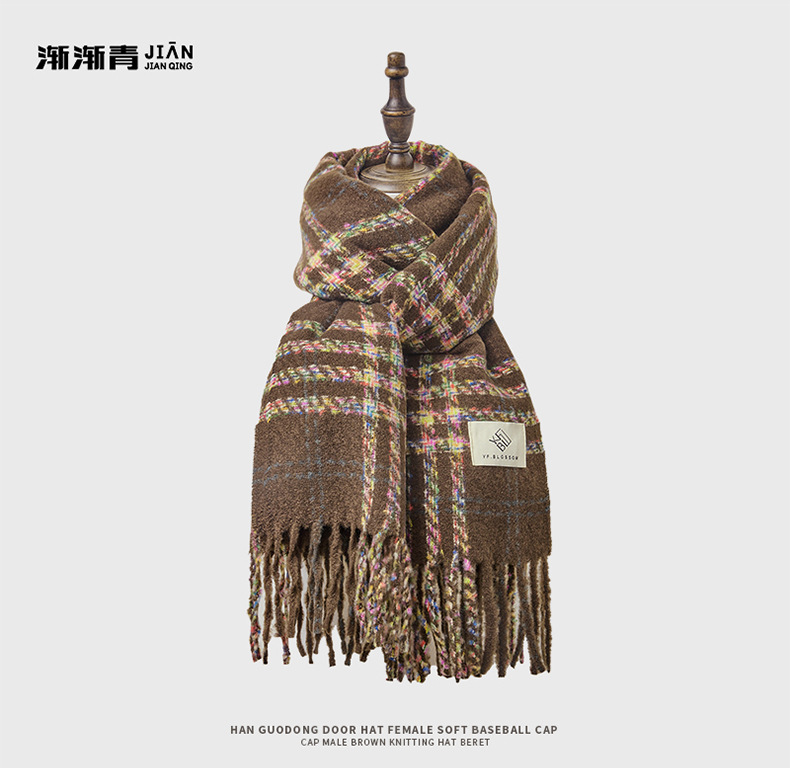 【秋冬新款软fufu韩系格子围巾 】复古潮流百搭围脖 柔软舒适保暖 围脖披肩两用加厚