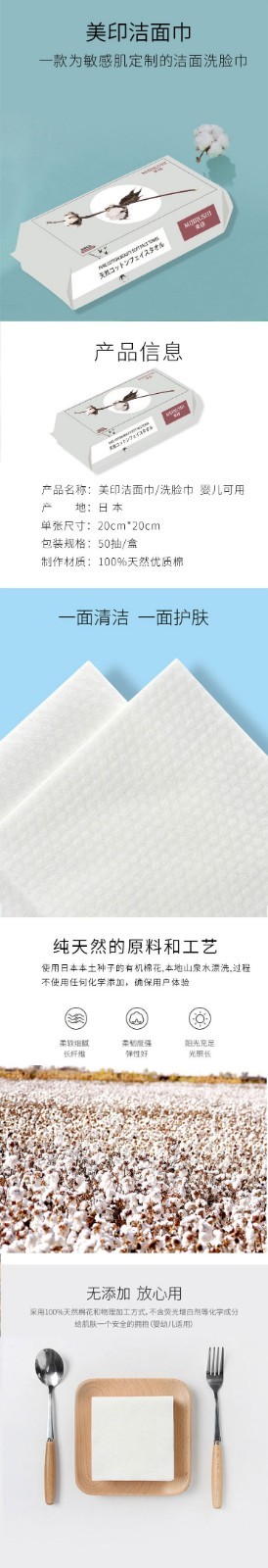 【香港直邮】日本MIJIRUSHI美印 洗脸巾/洁面巾 婴儿可用 50抽
