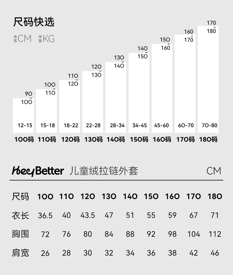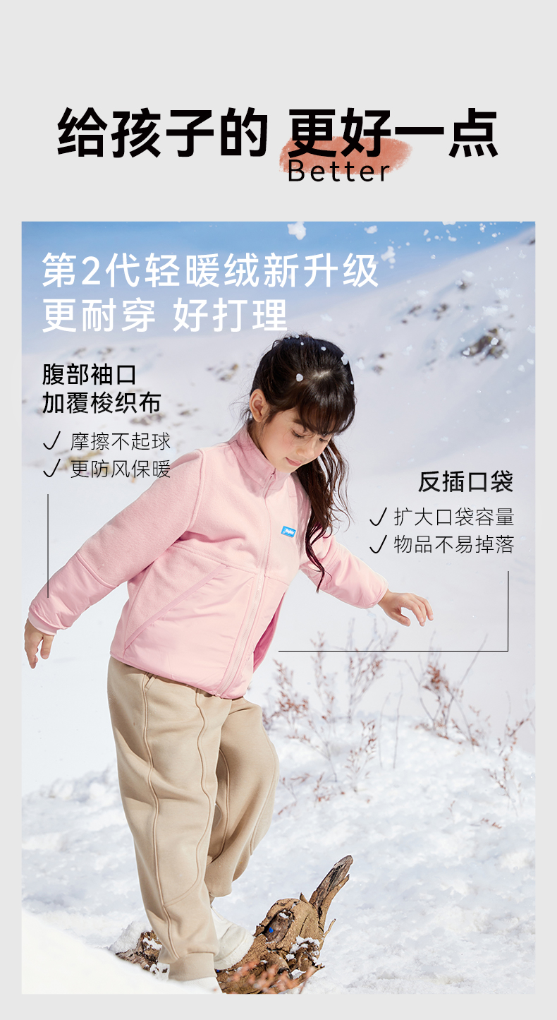 【代发】【预售3天左右发货】Heybetter儿童轻暖绒外套薄绒拉链外套