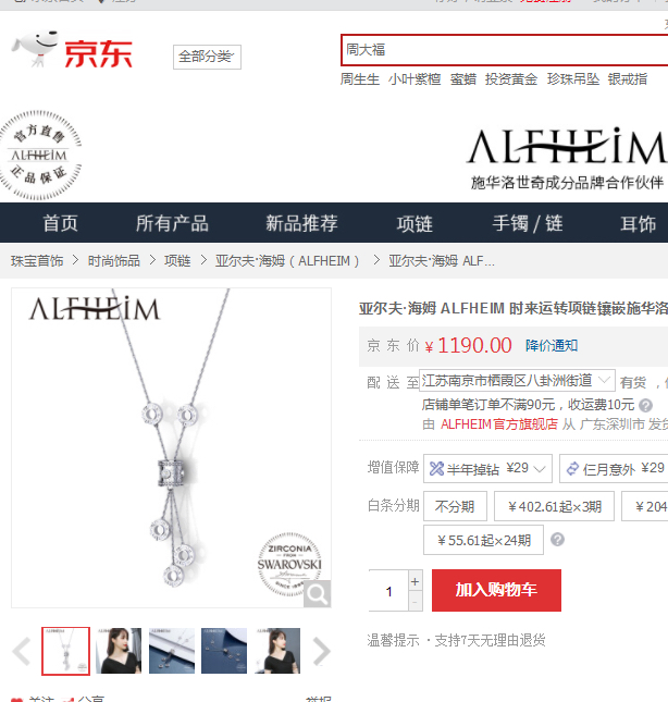 Alfheim 时来运转项链 施华诺世奇钻