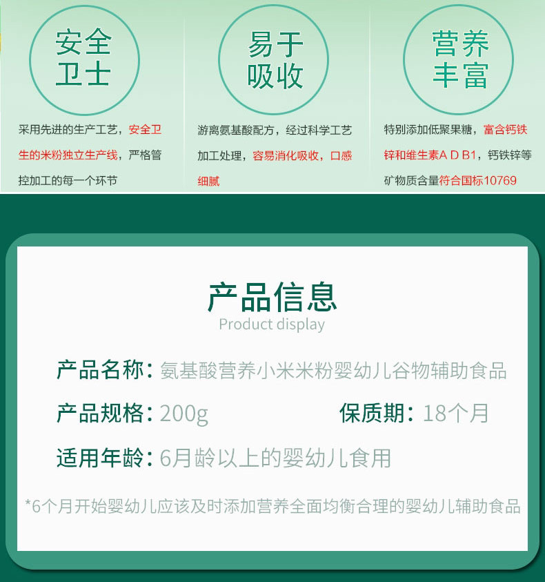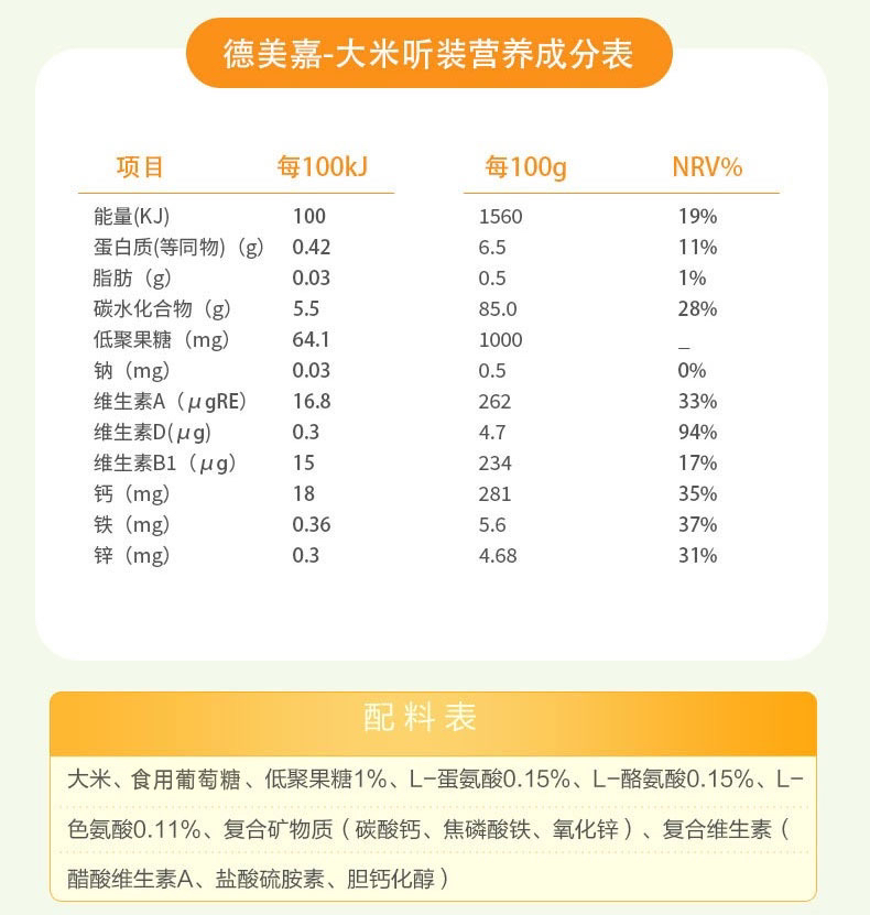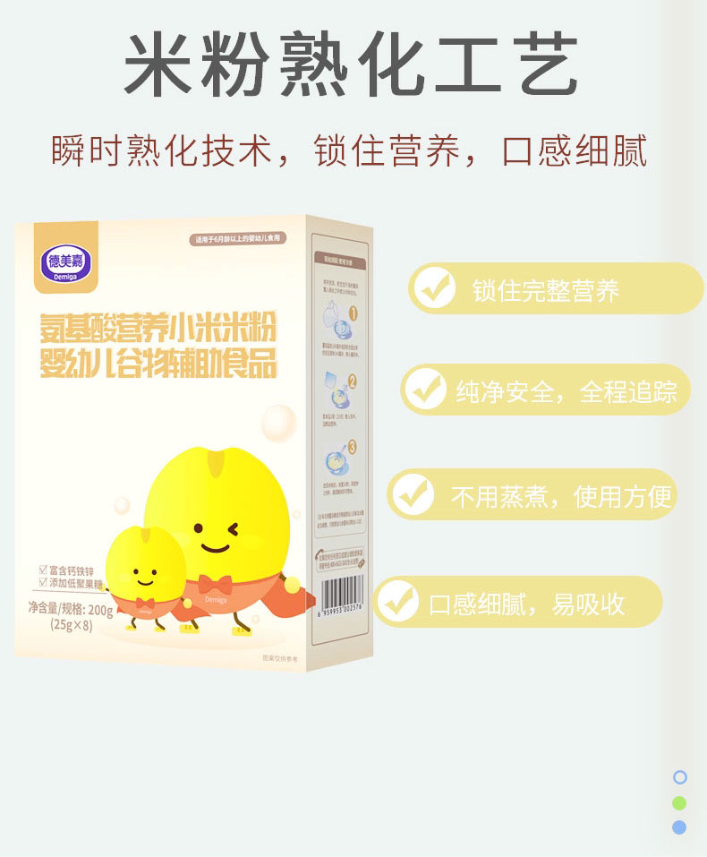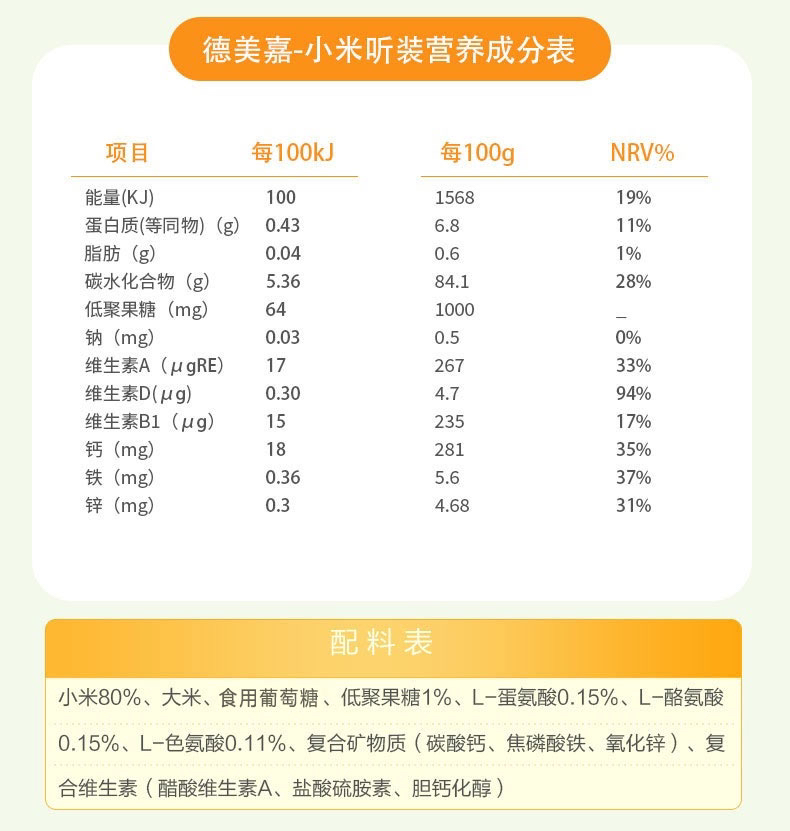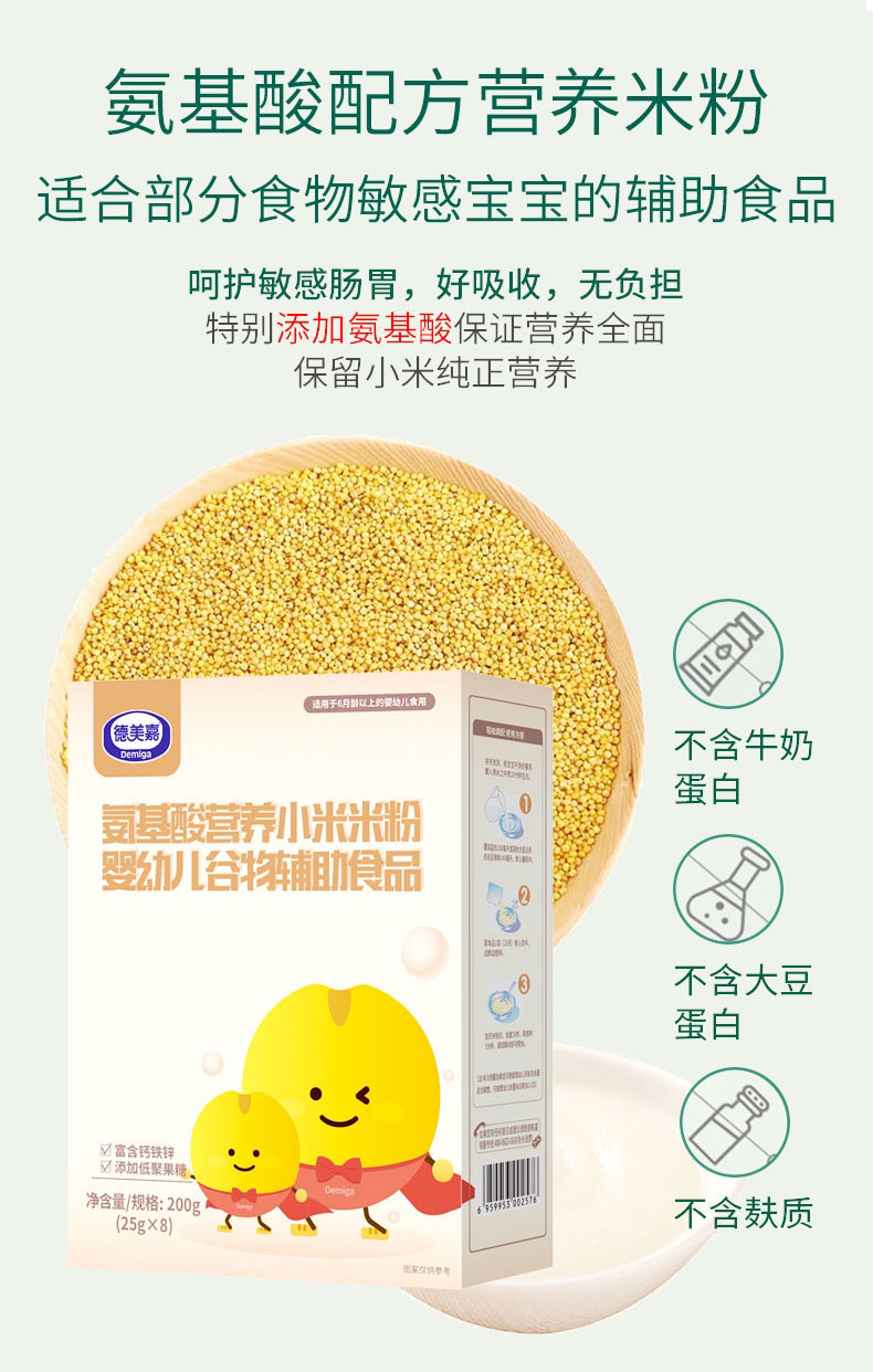 德美嘉小米氨基酸婴儿营养米粉低敏不含牛奶蛋白宝宝辅食 200g盒装