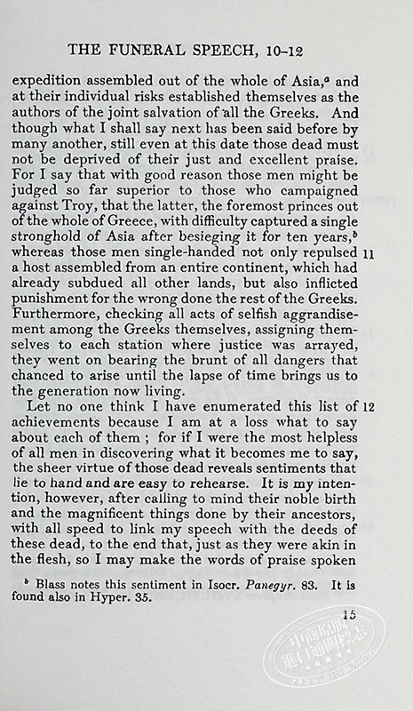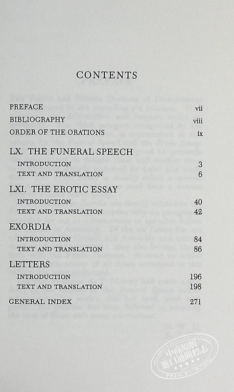 【中商原版】德摩斯梯尼 演说集 卷七 Orations Volume VII Orations 60-61 Funeral Speech Erotic Essay 英文原版 Demosthene