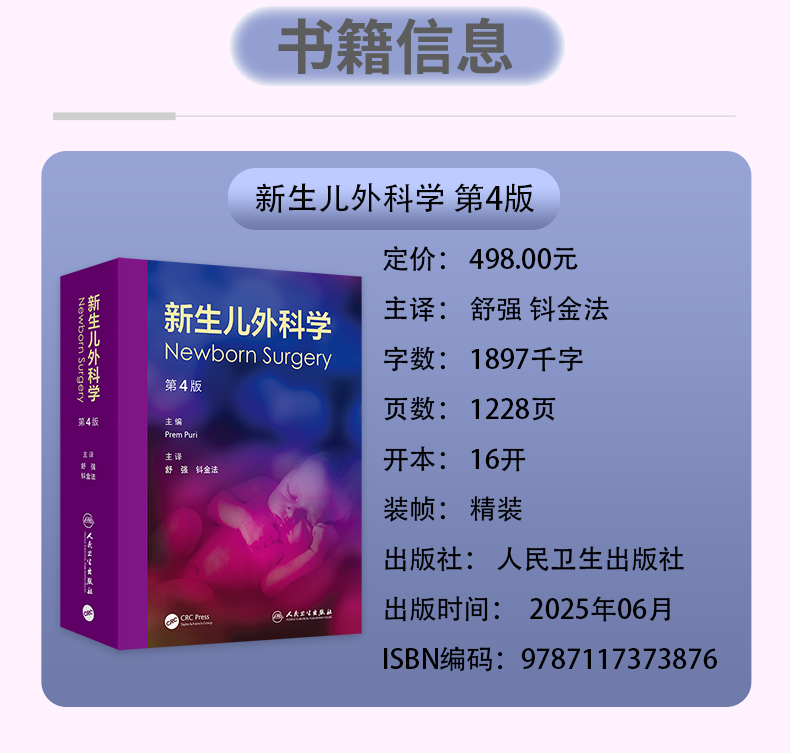 新生儿外科学 第4四版 舒强 钭金法 主译 阐述了新生儿外科疾病的特点 涵盖诊疗要点 临床精华 鉴别诊断等 儿科学 人民卫生出版社