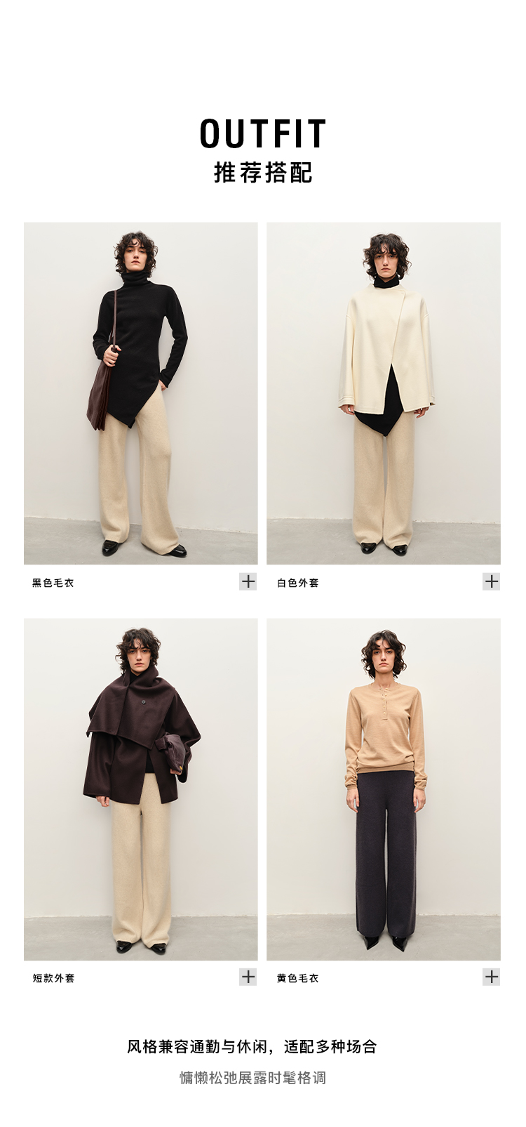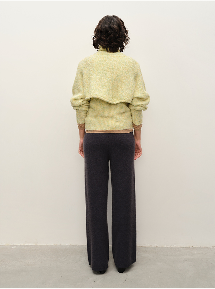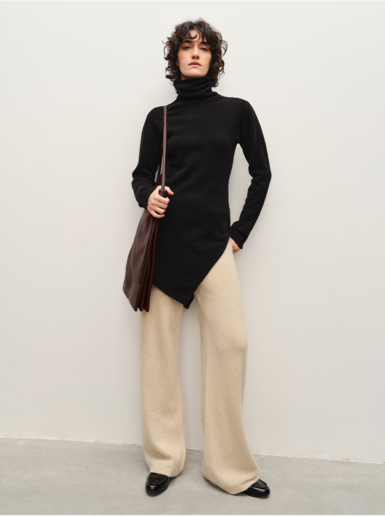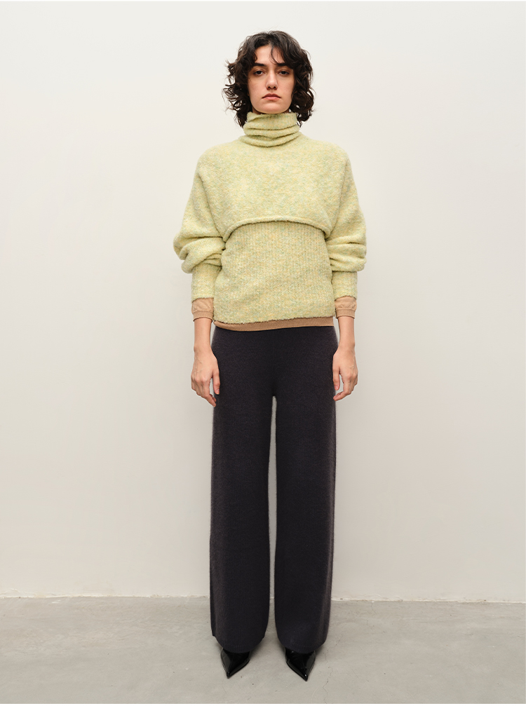 HIDEMI 纸片人超显瘦针织套装 高领背心/喇叭裤