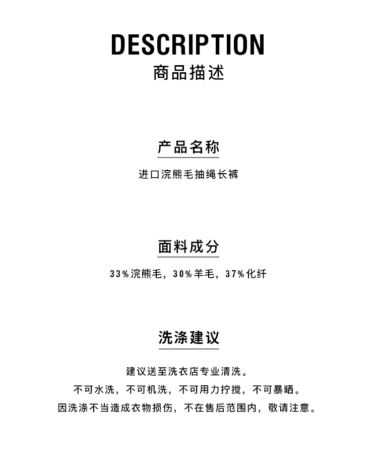 HIDEMI 进口浣熊毛抽绳长裤阔腿裤