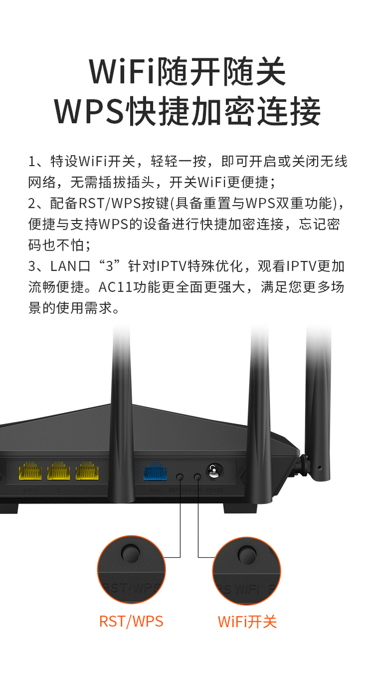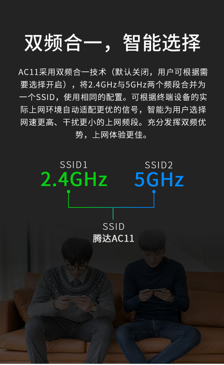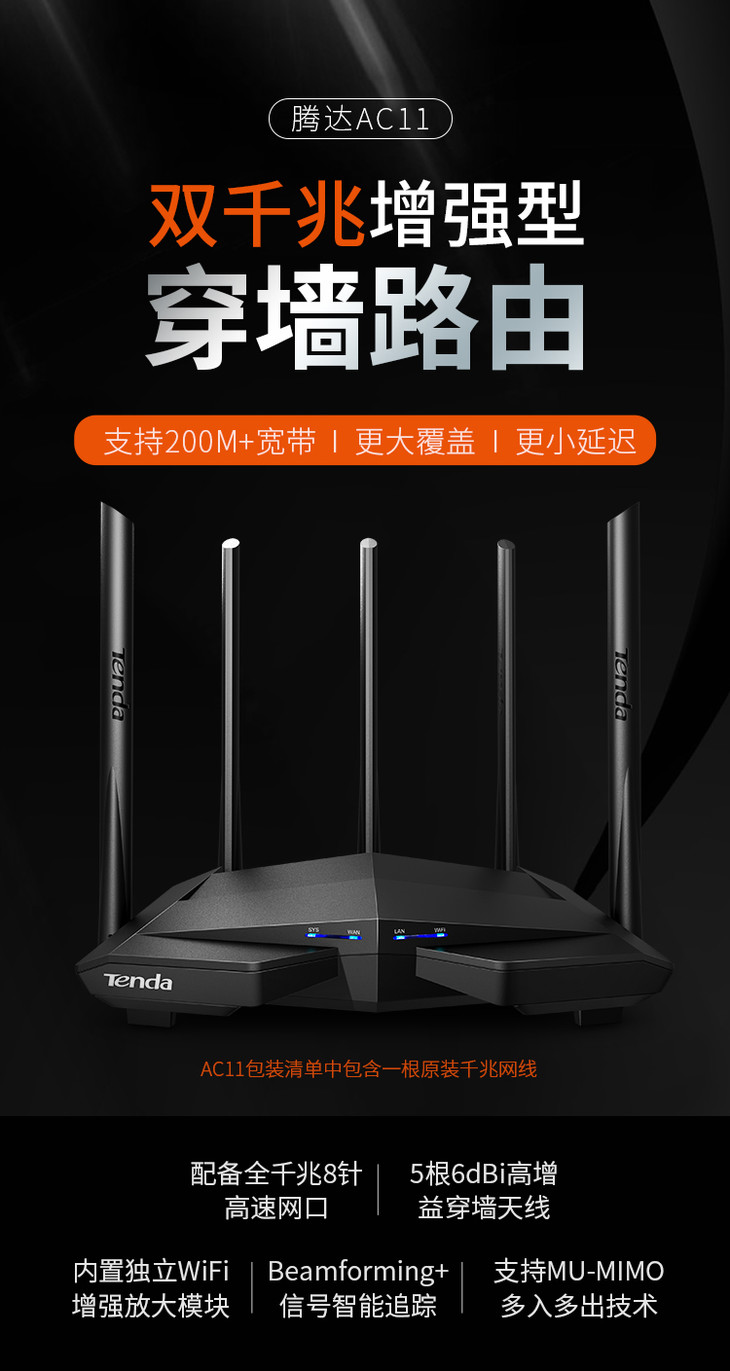腾达(Tenda)AC11 双千兆路由器穿墙增强型 家用游戏无线路由器 智能5G双频1200M 千兆端口光纤适用