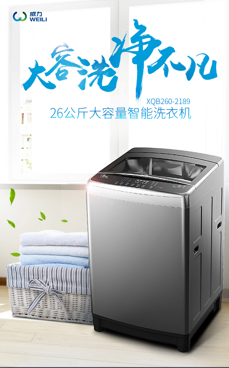 威力(WEILI)26公斤 波轮洗衣机全自动 大容量家用 量衣判水旋洗波轮 预约自编程 优质电机