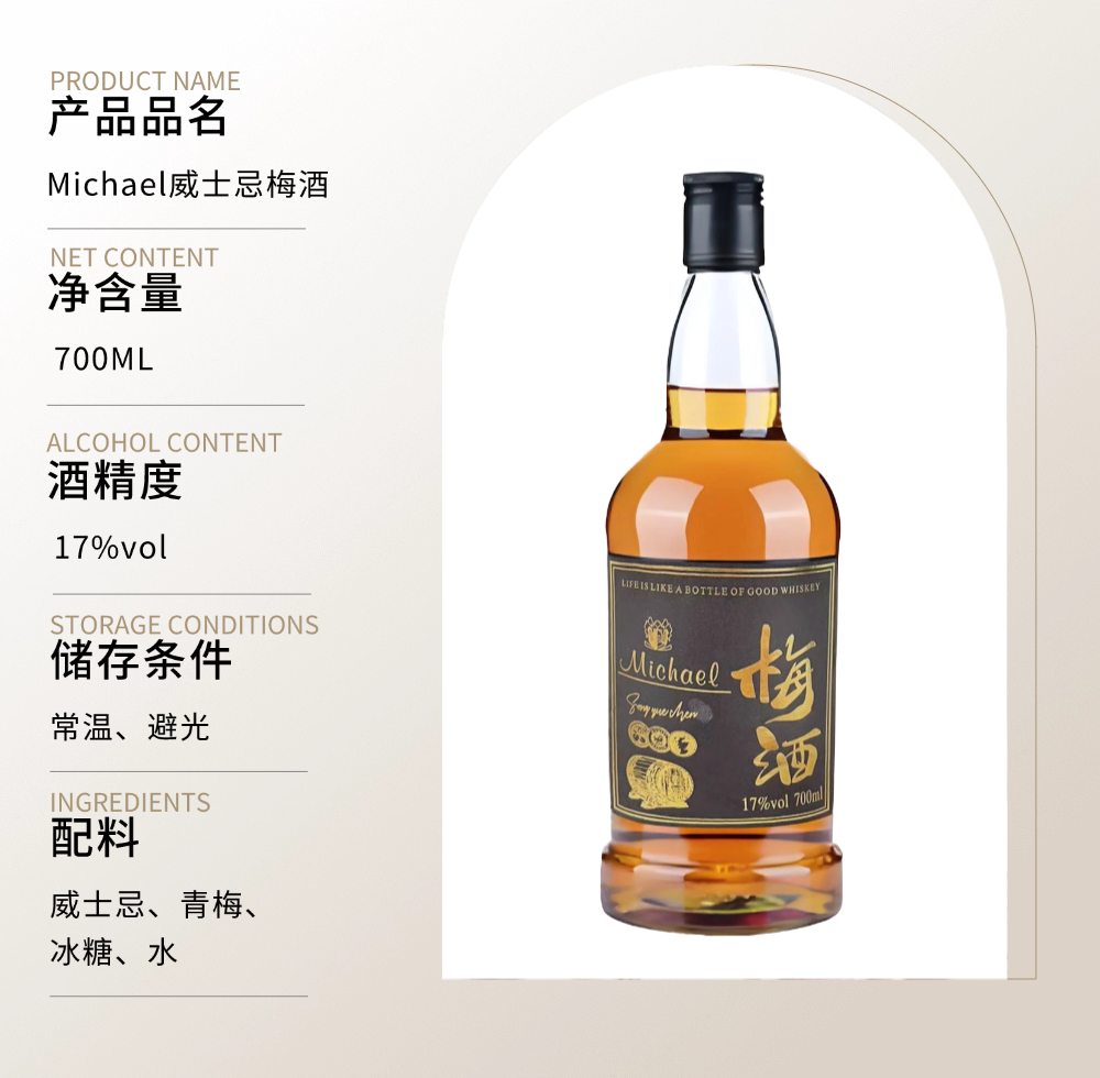 热卖中!!【1919全球酒水连锁专柜款】麦克尔Michael威士忌梅酒 17%VOL 带手提礼盒
