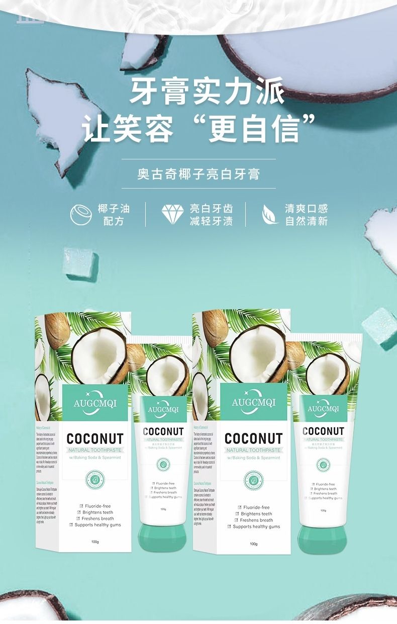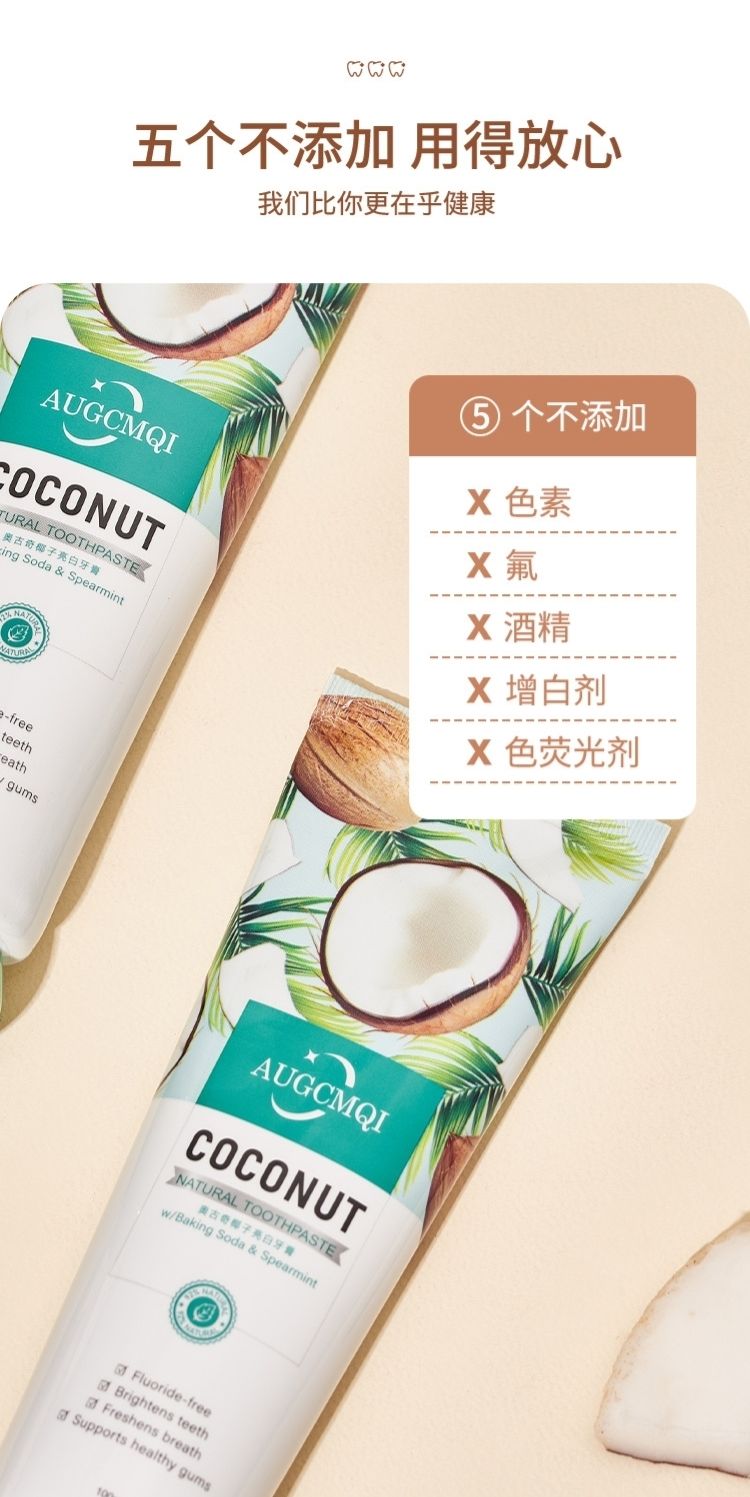 【爆款超低价预售 急单慎拍】椰子亮白植物牙膏去渍去黄清新口气美白健齿牙周护理无氟通用100g