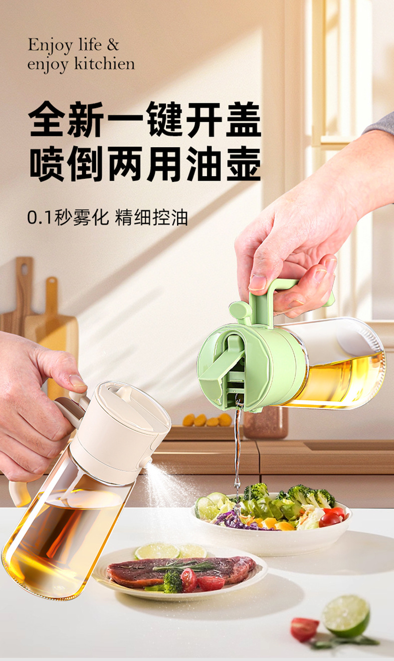 【一键开盖!喷倒两用油壶】喷倒二合一油壶喷油倒油一体两用喷油壶家用厨房烧烤喷油雾状油壶。ry