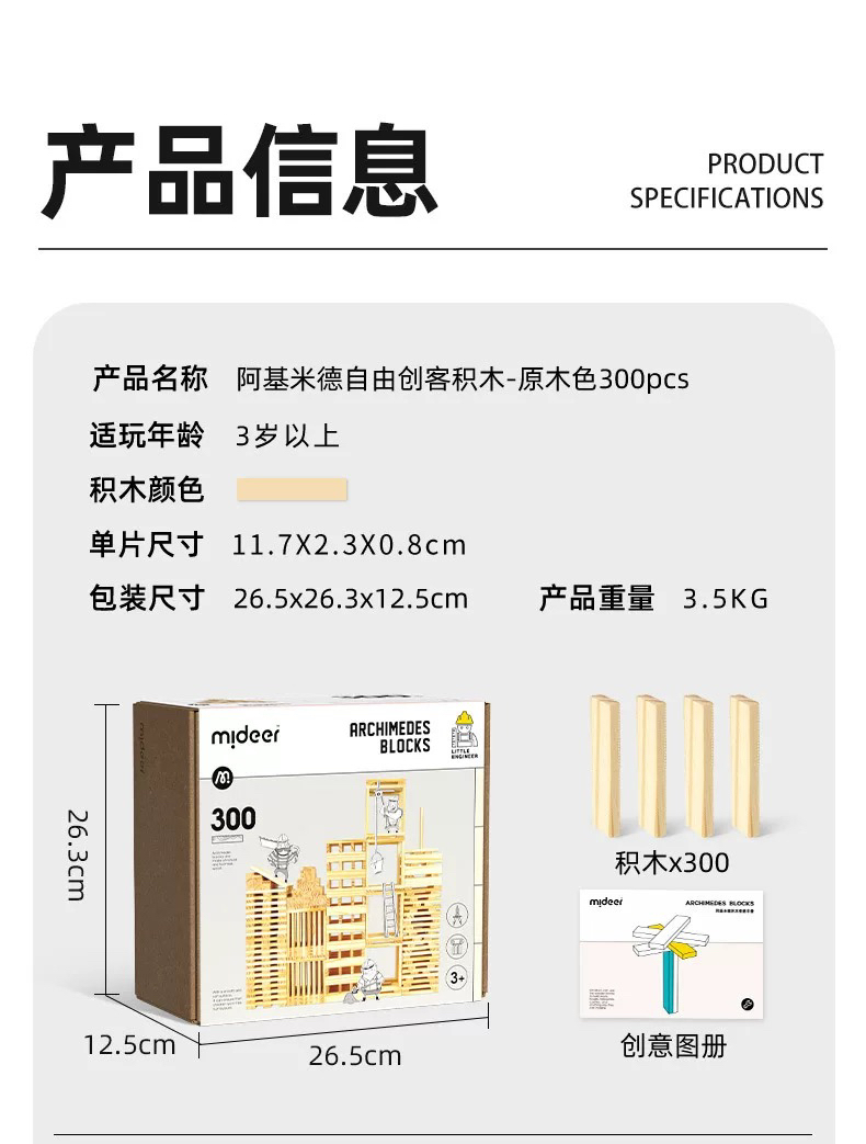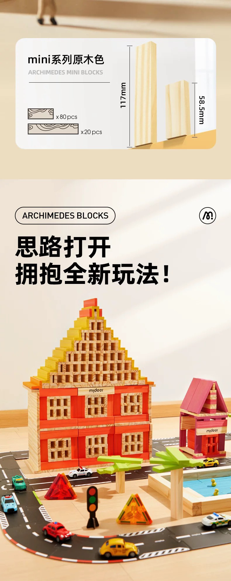 GZKmideer弥鹿MD1168阿基米德积木-原木色