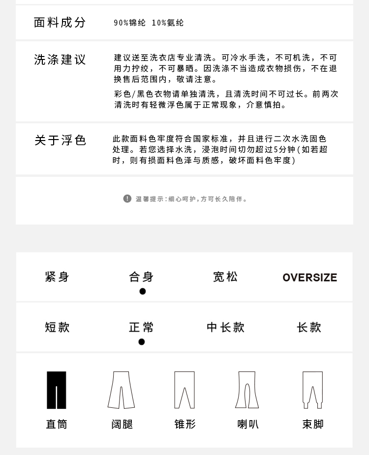 HIDEMI 弹力收身显瘦微喇九分神裤西裤 黑色/白色/卡其