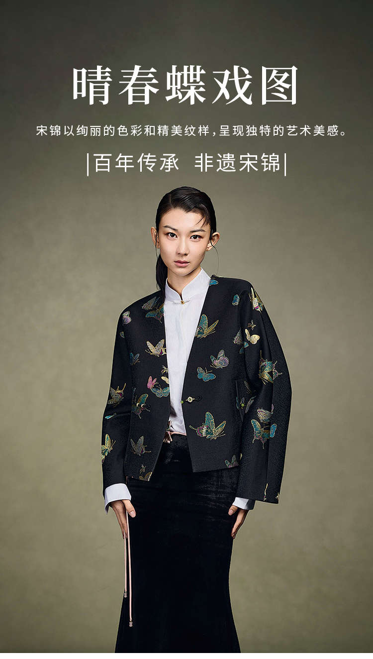 上久楷女式宋锦外套 中式上衣 晴春蝶戏 CY1025203001