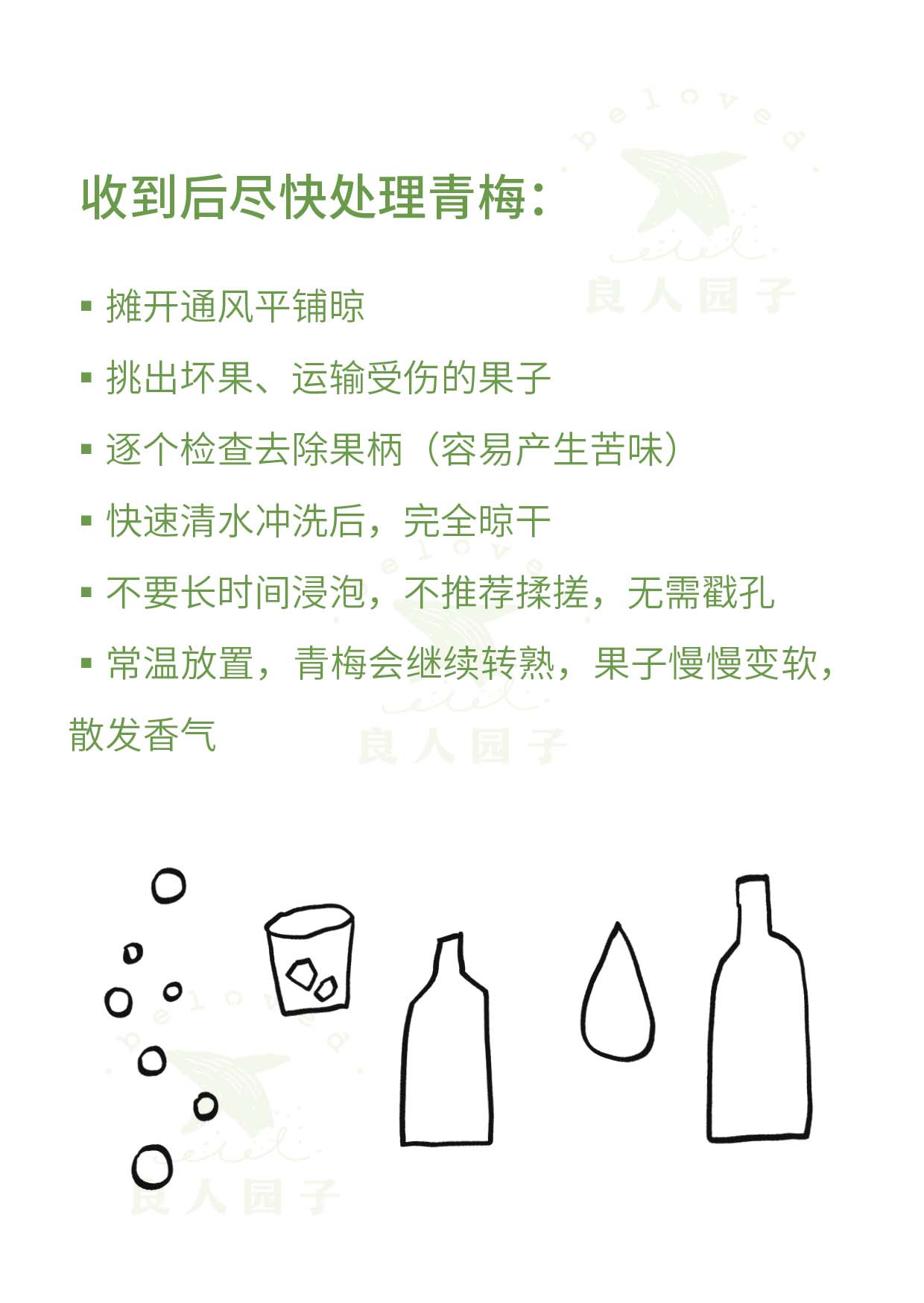 3、青梅不易保存,只发顺丰。请大家自行关注发货后有赞系统通知和顺丰公众号提醒。签收当天没有打开查看导致的坏果,不售后!收到后第一时间打开箱子,把果子摊开阴凉存放,并且尽快做掉它们。