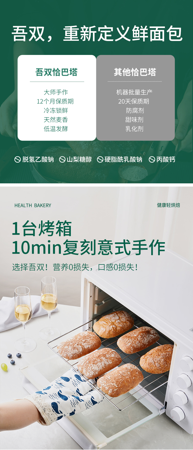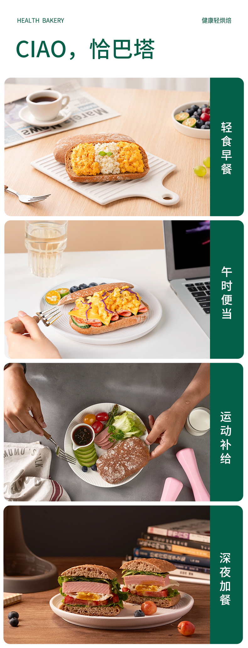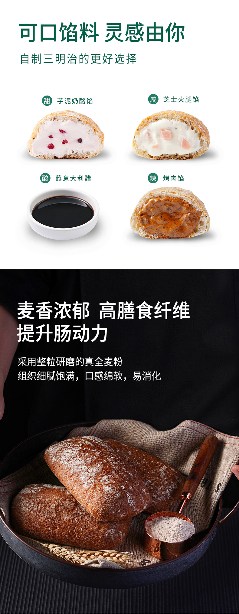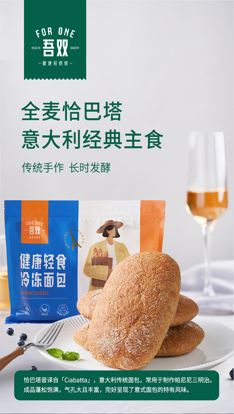 吾双全麦恰巴塔轻食代餐无蔗糖硬式欧包100g*4早晚餐预烘焙面包
