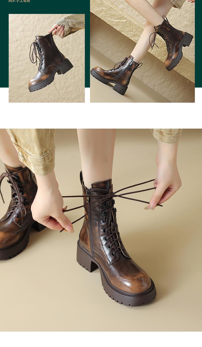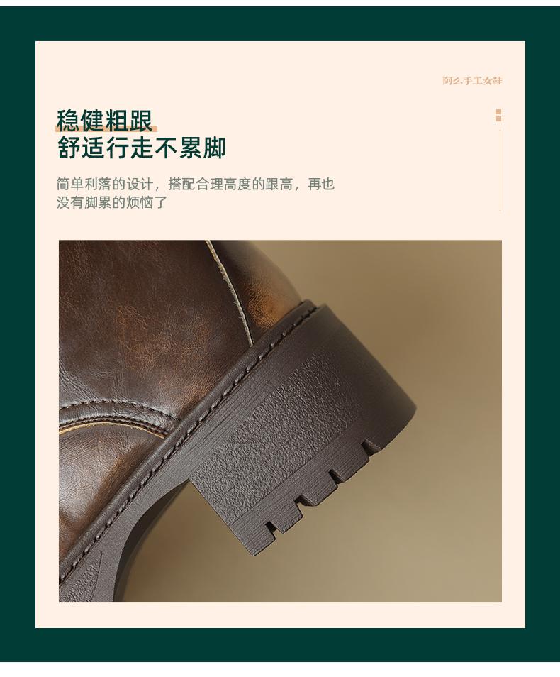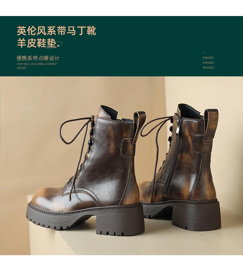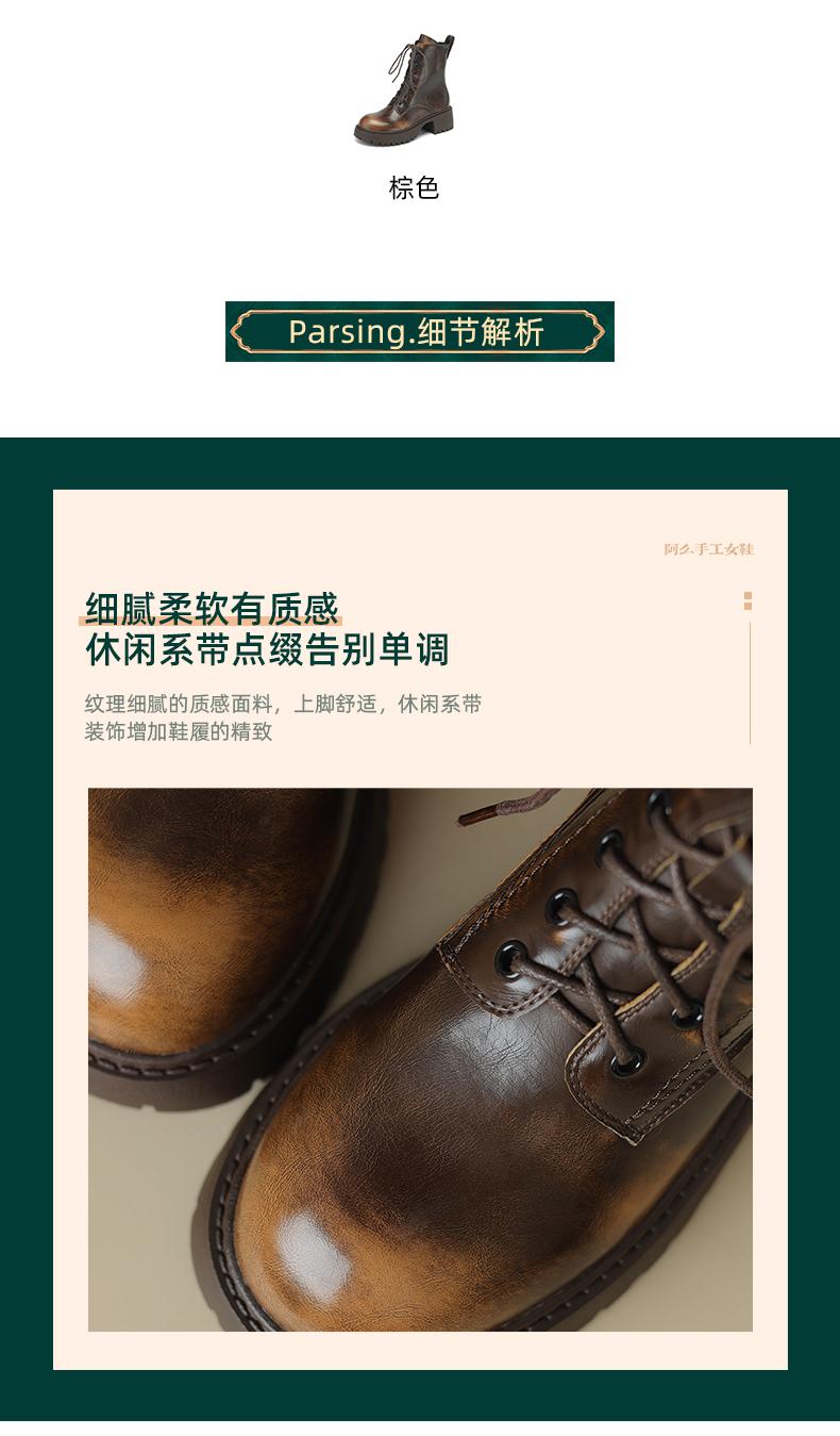 阿么手工女鞋复古真皮高跟马丁靴2025新款英伦风厚底6CM时尚短靴