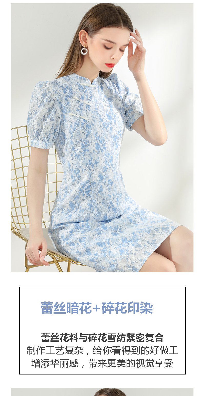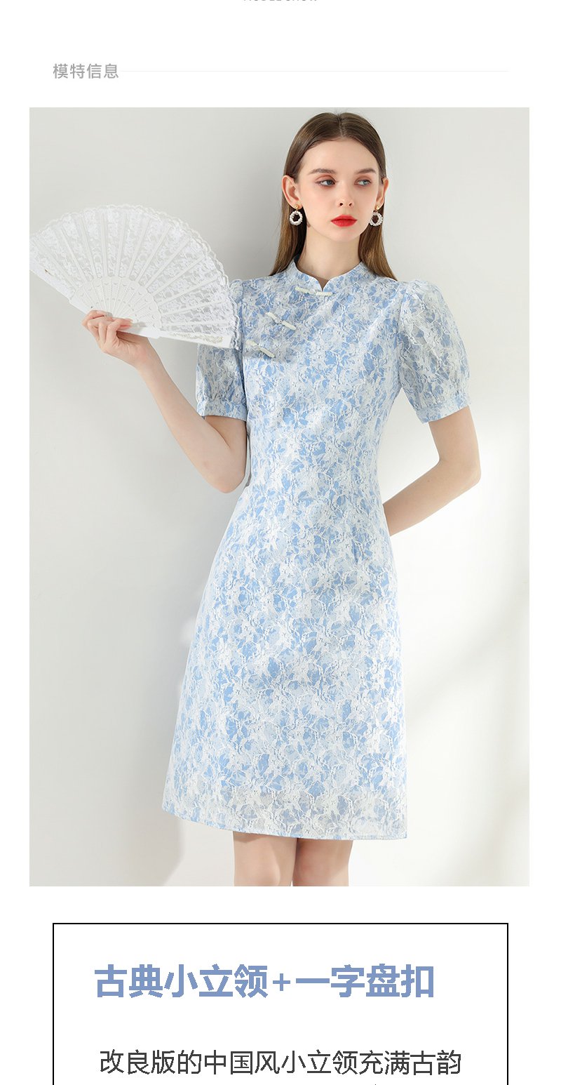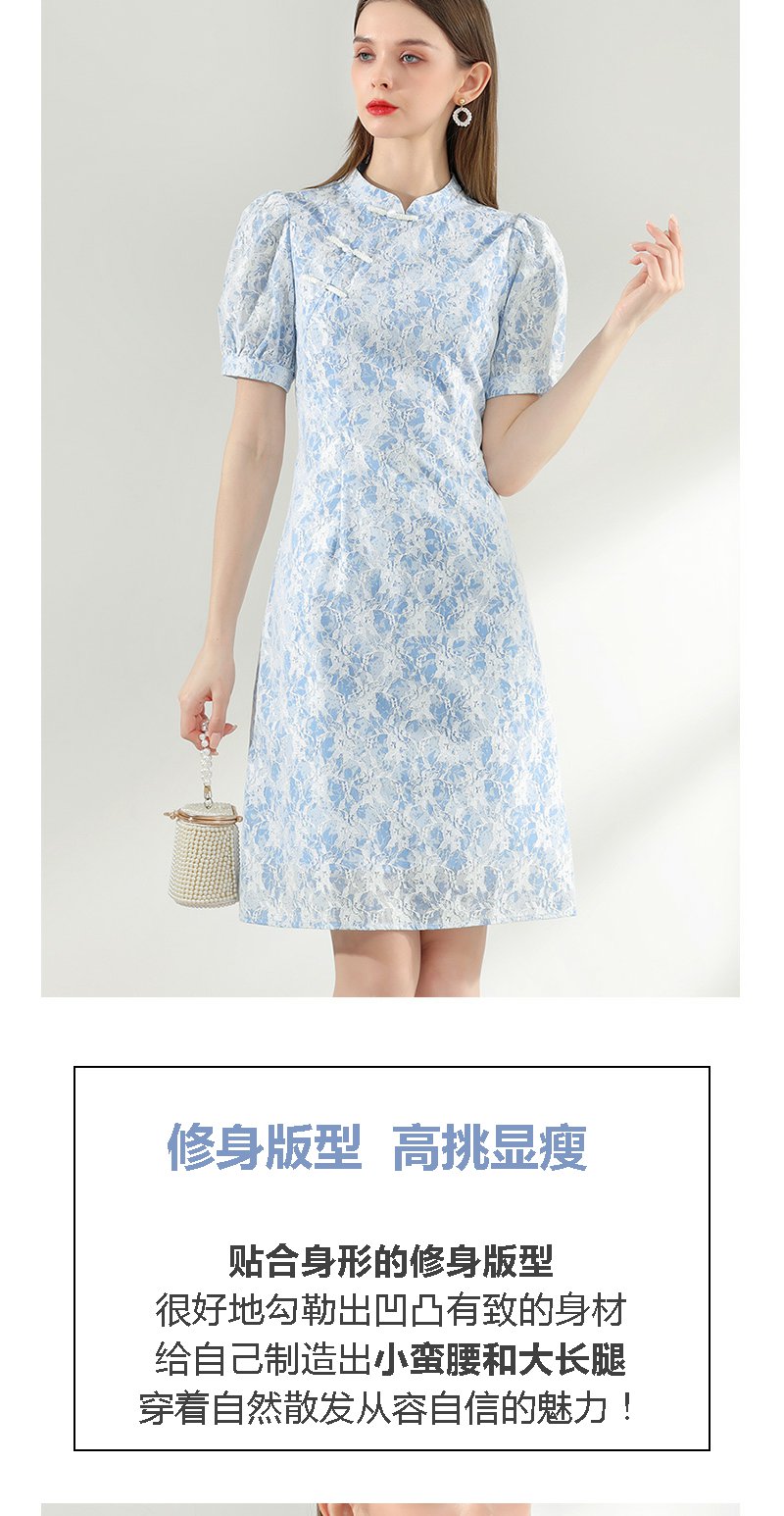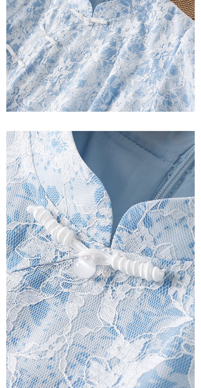 未风蓝色改良旗袍连衣裙女夏2024夏季新款女装蕾丝新中式显瘦裙子