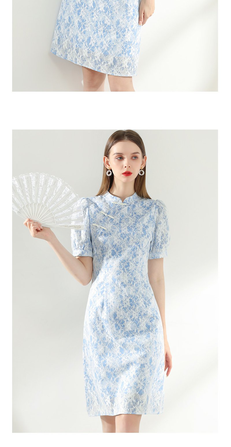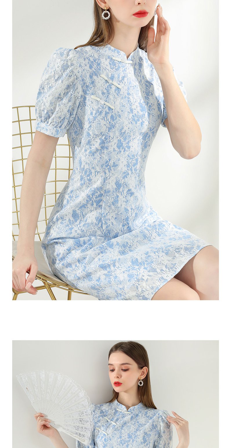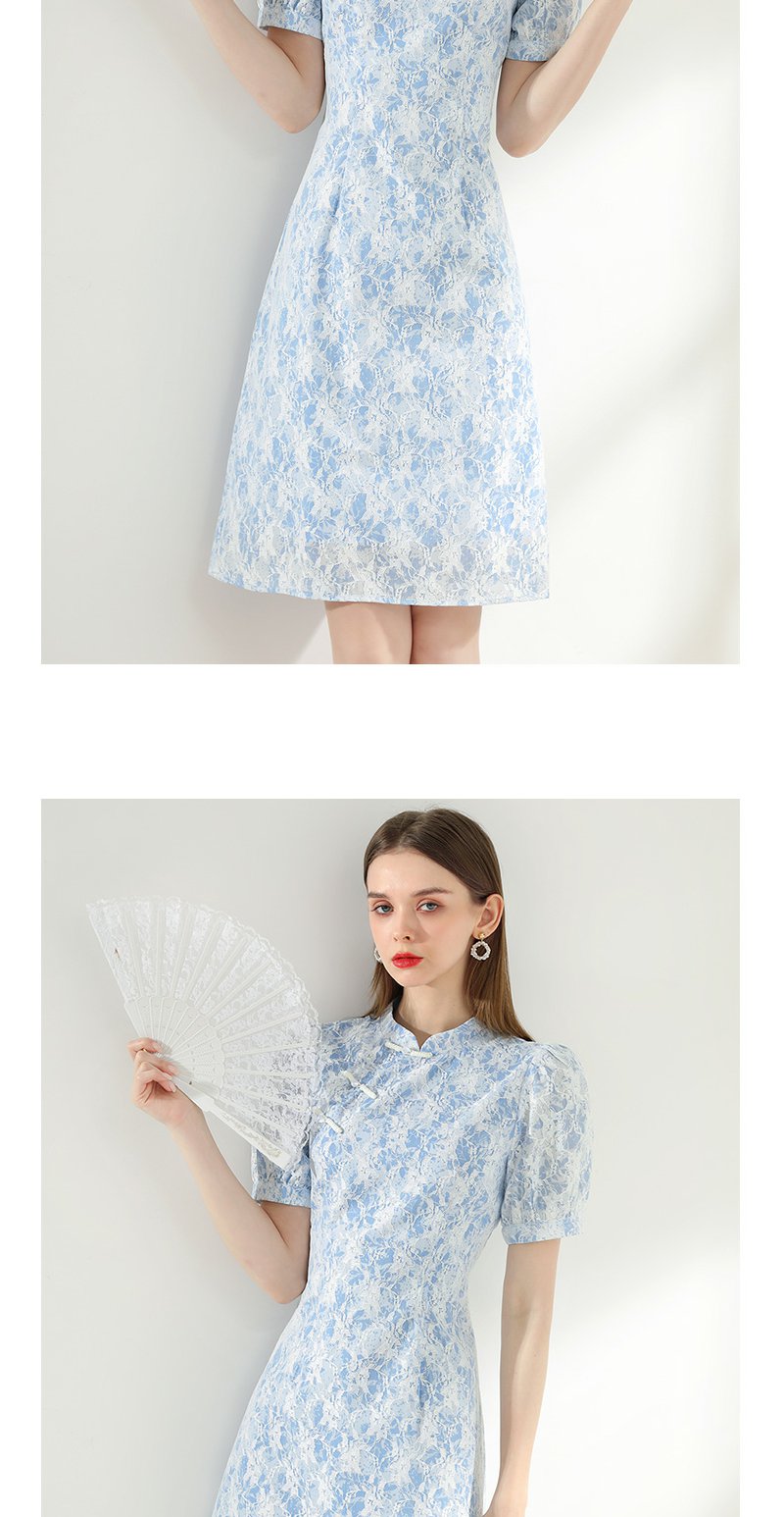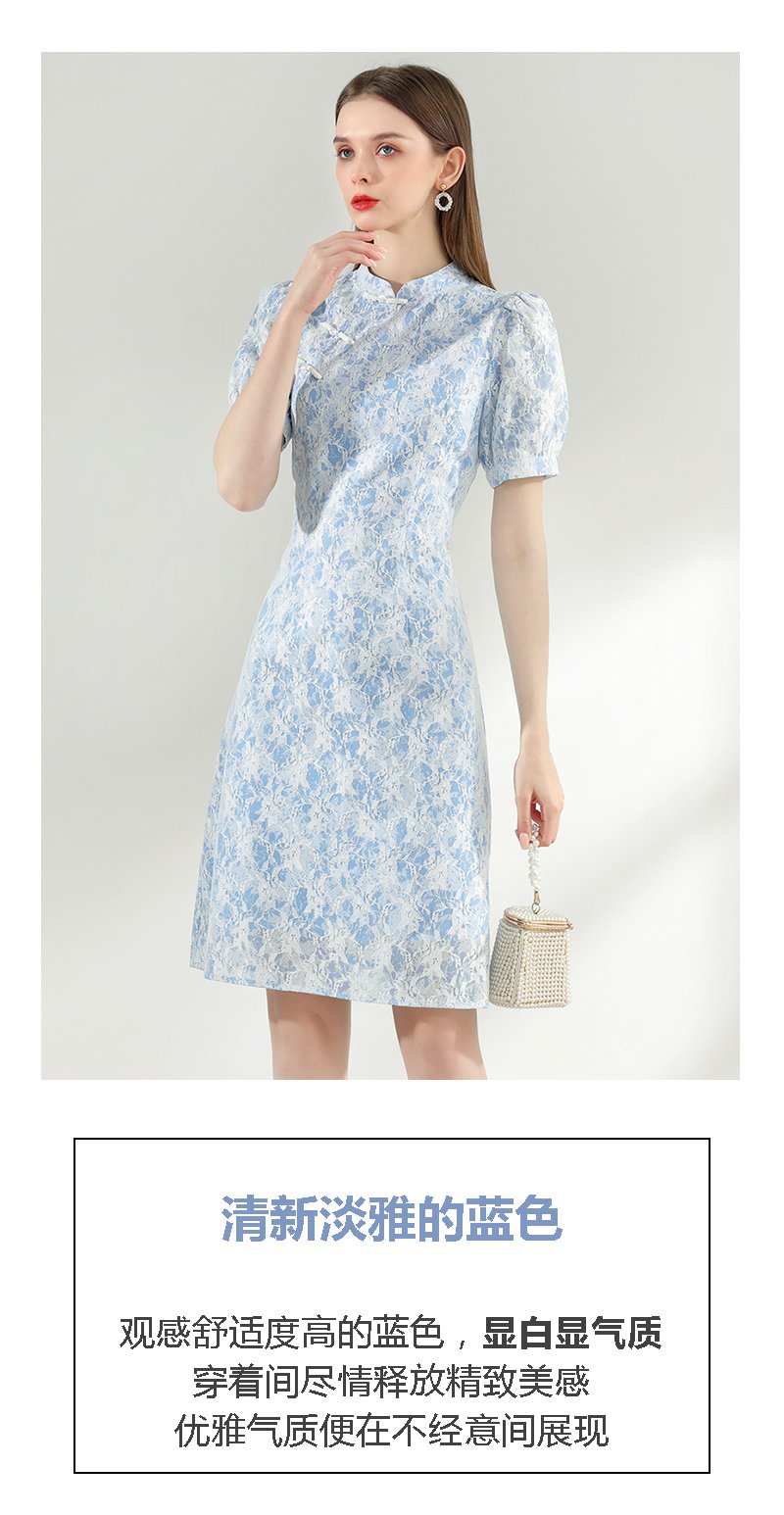 未风蓝色改良旗袍连衣裙女夏2024夏季新款女装蕾丝新中式显瘦裙子
