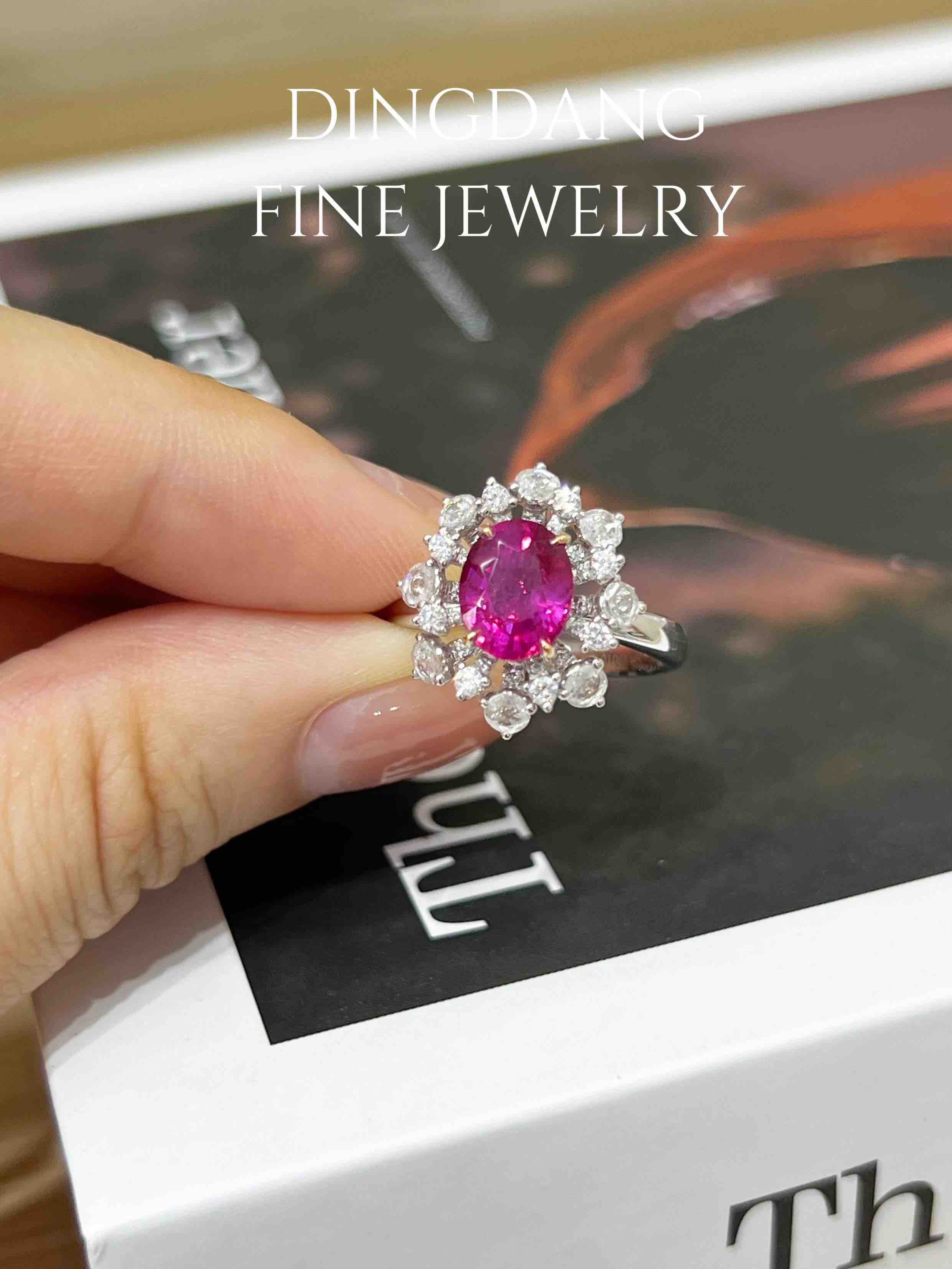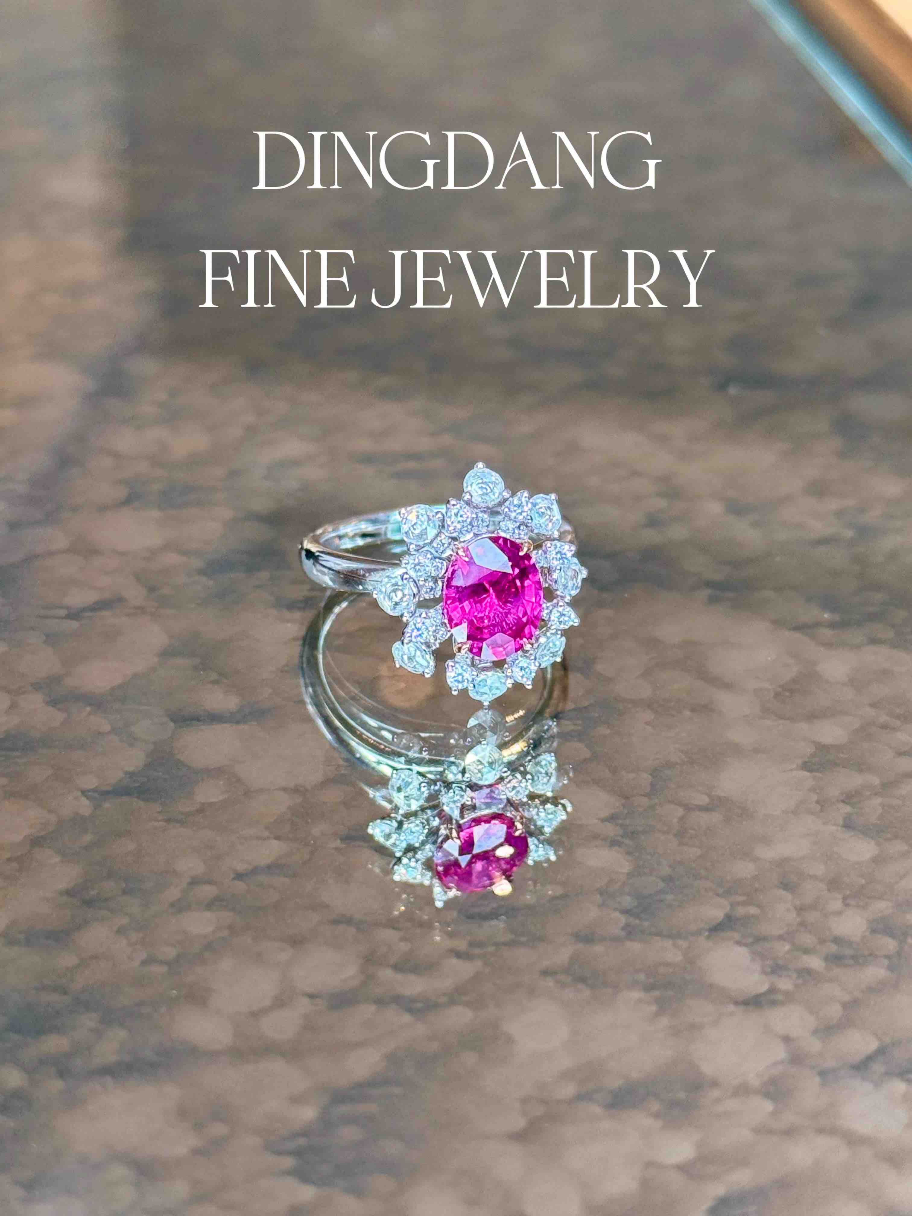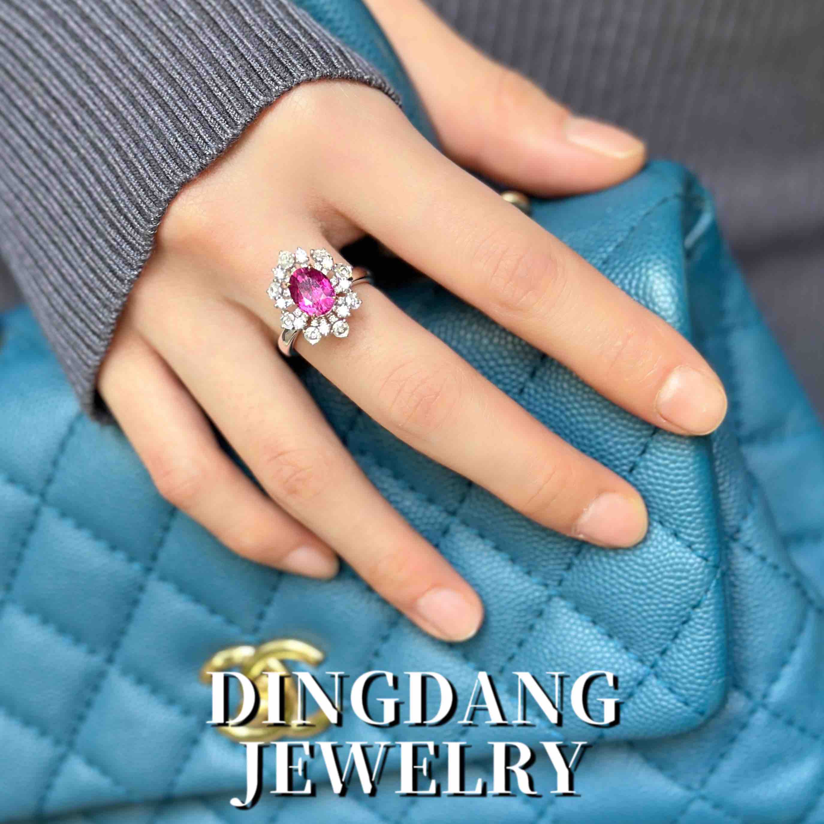 莫粉蓝宝 purplish pink 主石2. 01ct 钻戒 Agtl证书 D0. 673ct