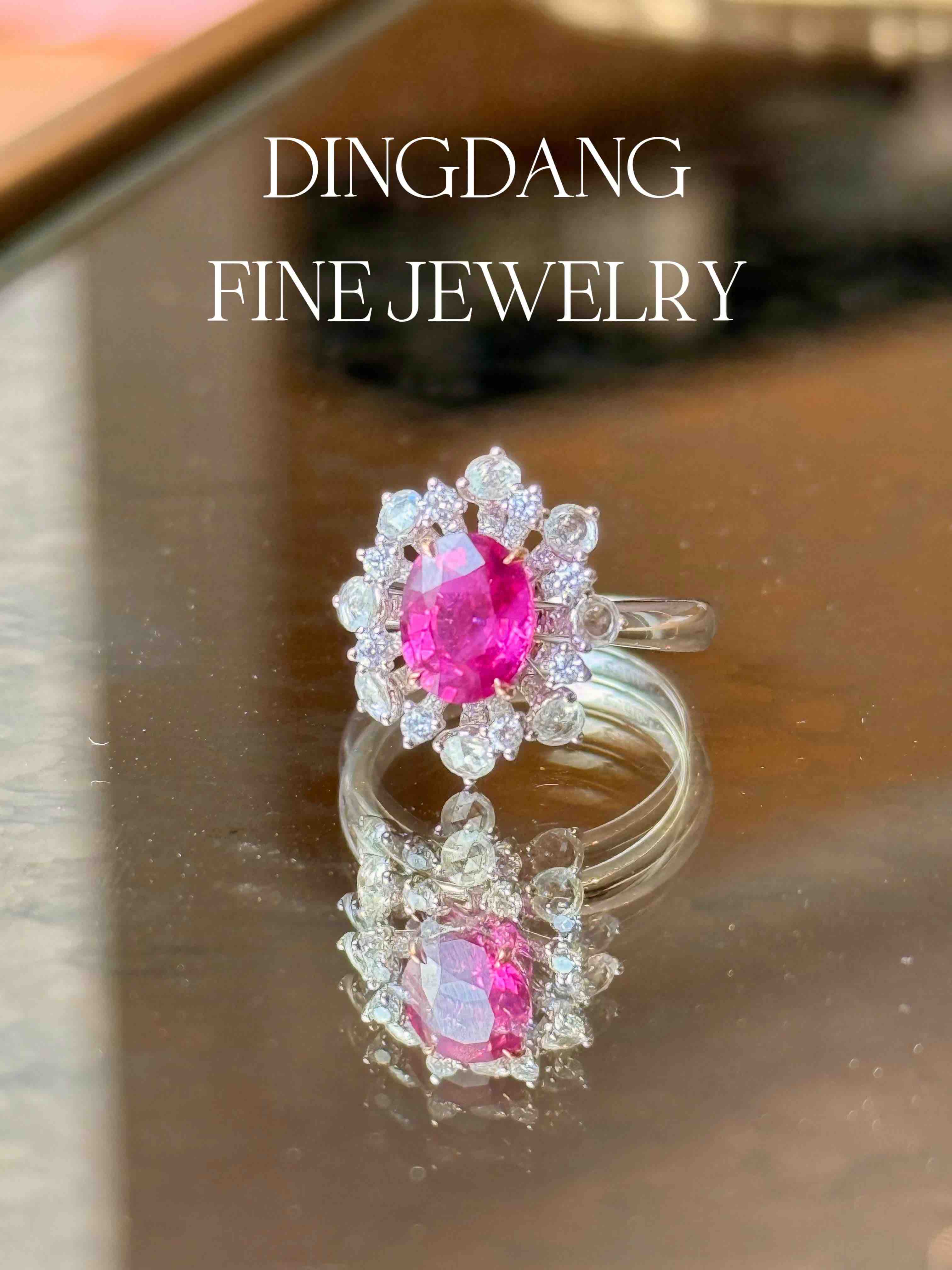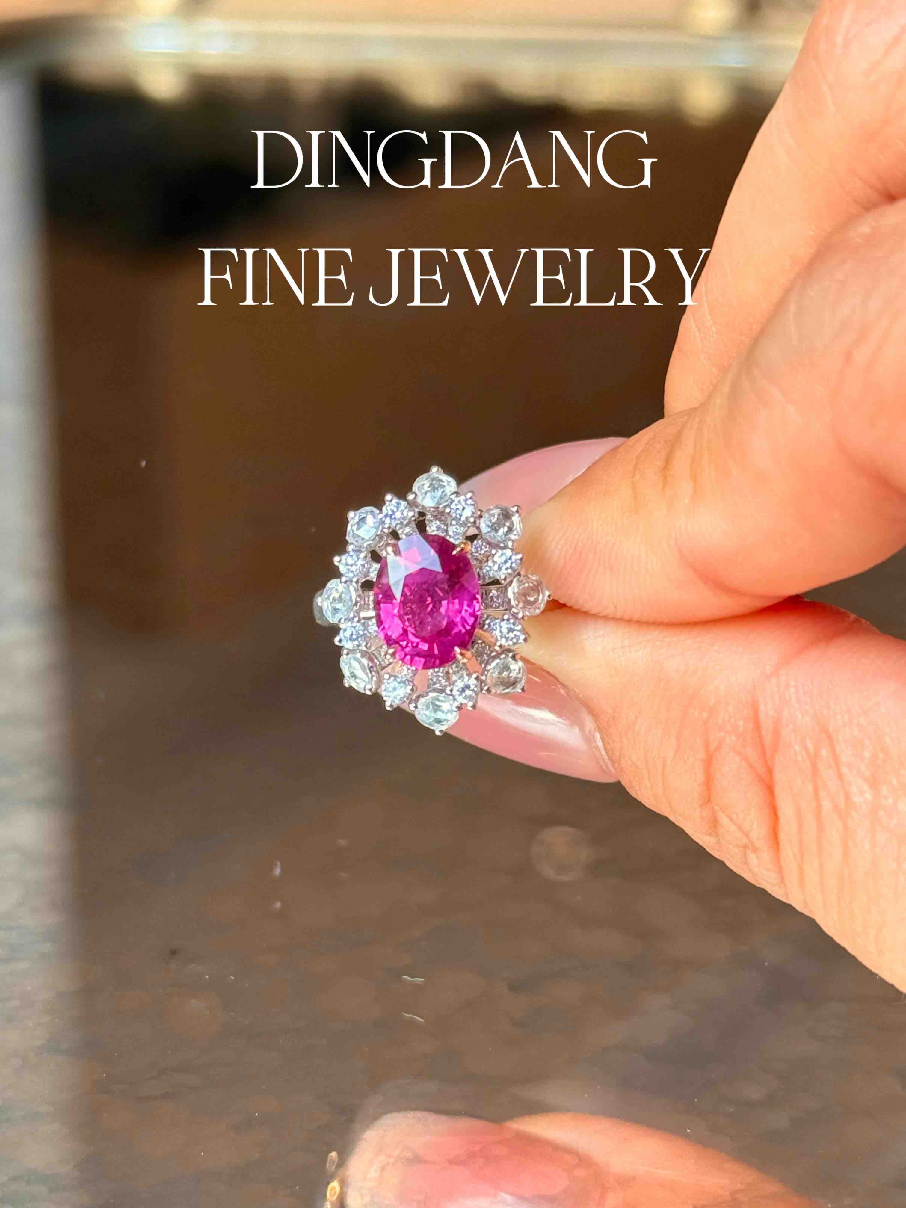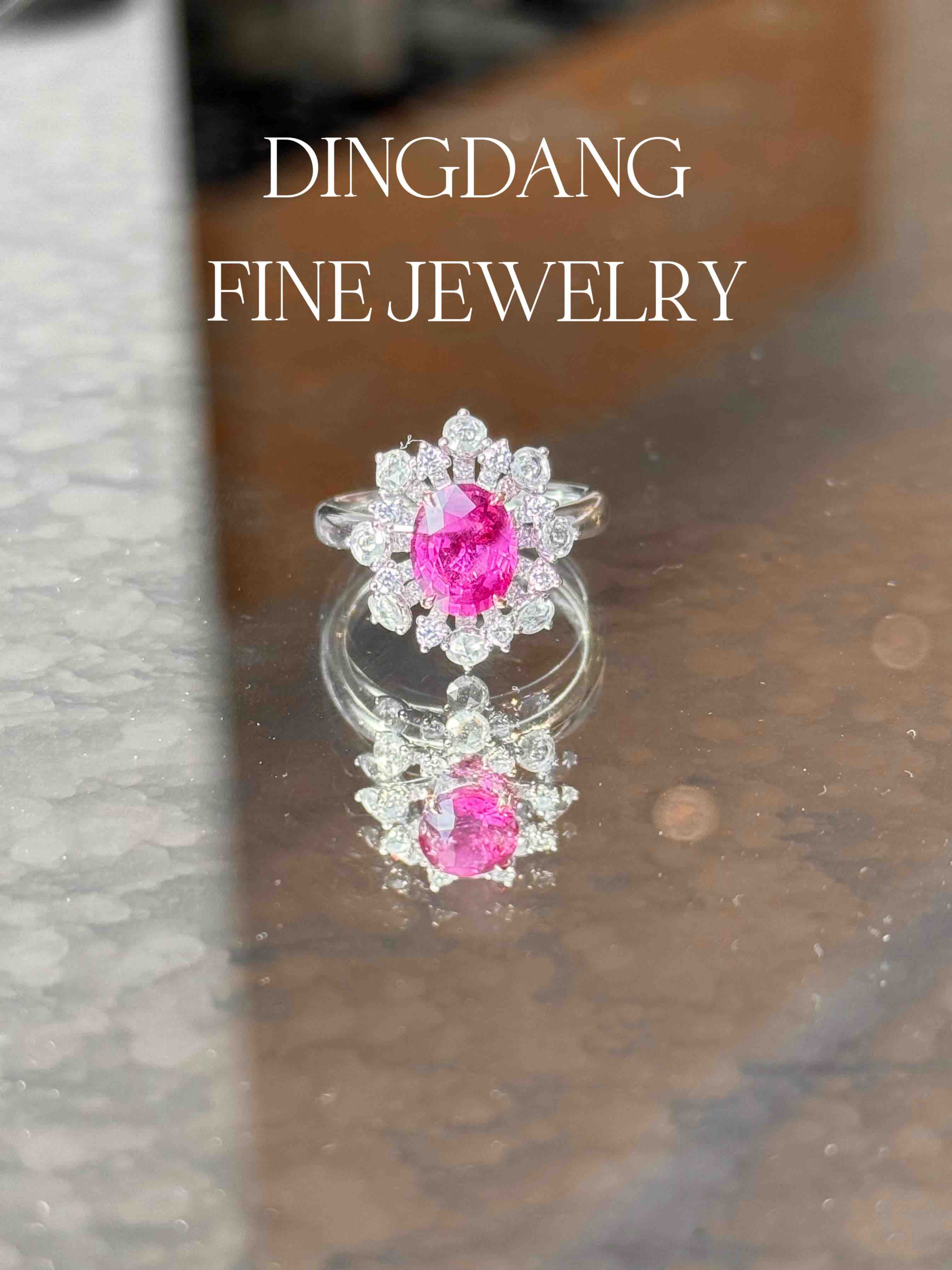 莫粉蓝宝 purplish pink 主石2. 01ct 钻戒 Agtl证书 D0. 673ct