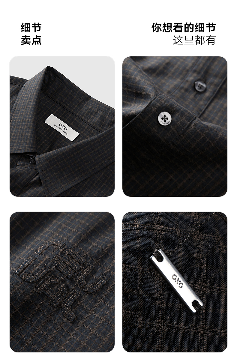 GXG男装 格纹设计长袖衬衫通勤男士薄外套25年夏季热卖G25X032037