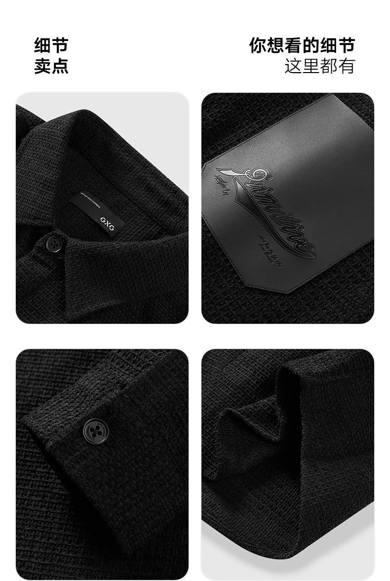 GXG男装 异材质口袋拼接衬衫通勤男款衬衣宽松外套 2025春季热卖