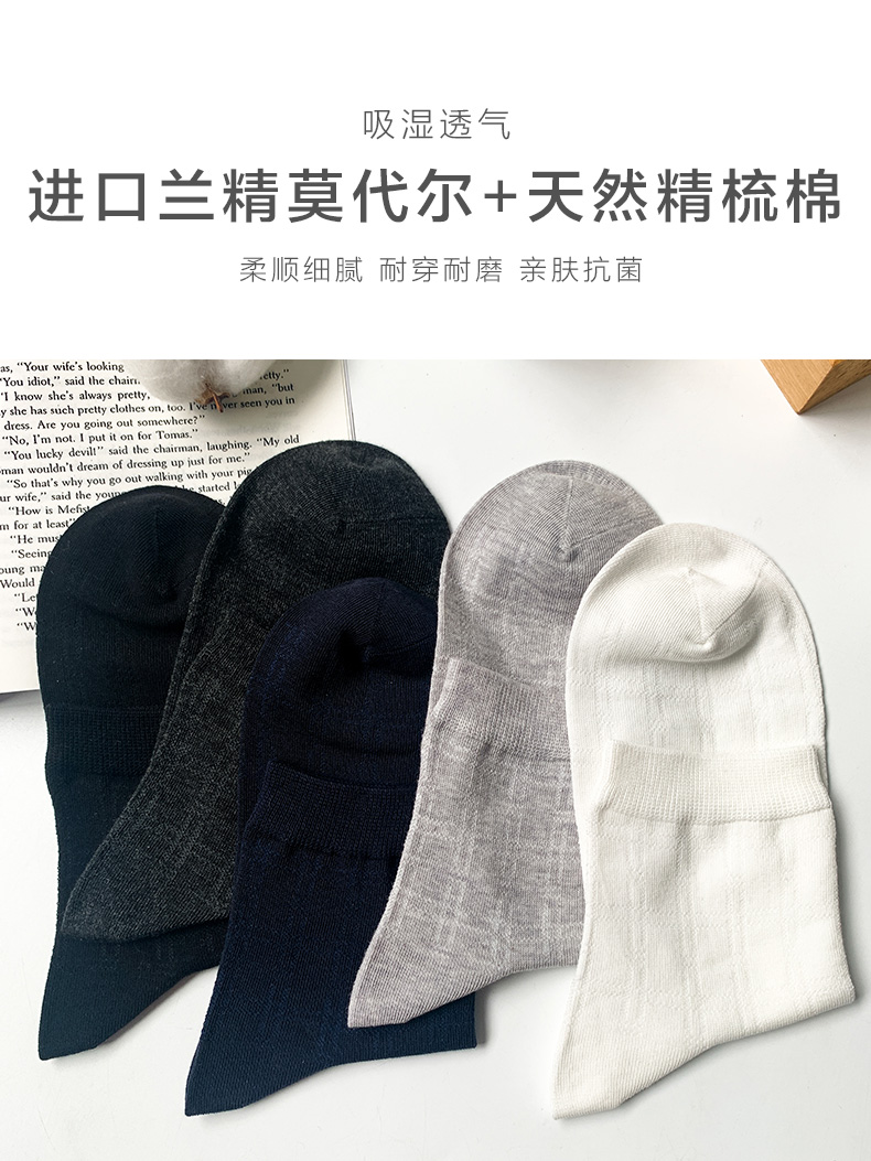 兰精莫代尔棉24夏天新品男中筒袜抗菌轻薄透气商务男士袜子